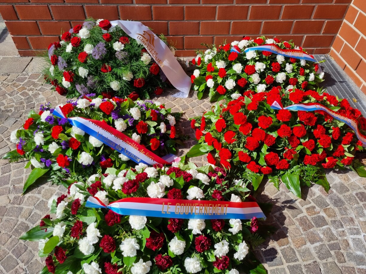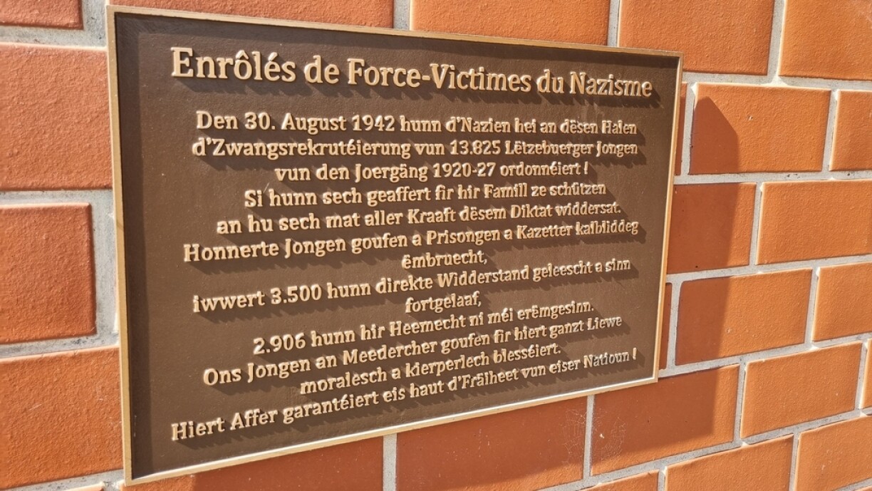 En Dënschdeg war eng Gedenkfeier fir den 80. Joresdag vun der Proklamatioun vun der Zwangsrekrutéierung. Ënnert anerem virun der Victor Hugo Hall um Lampertsbierg goufe Blummen néier geluecht.