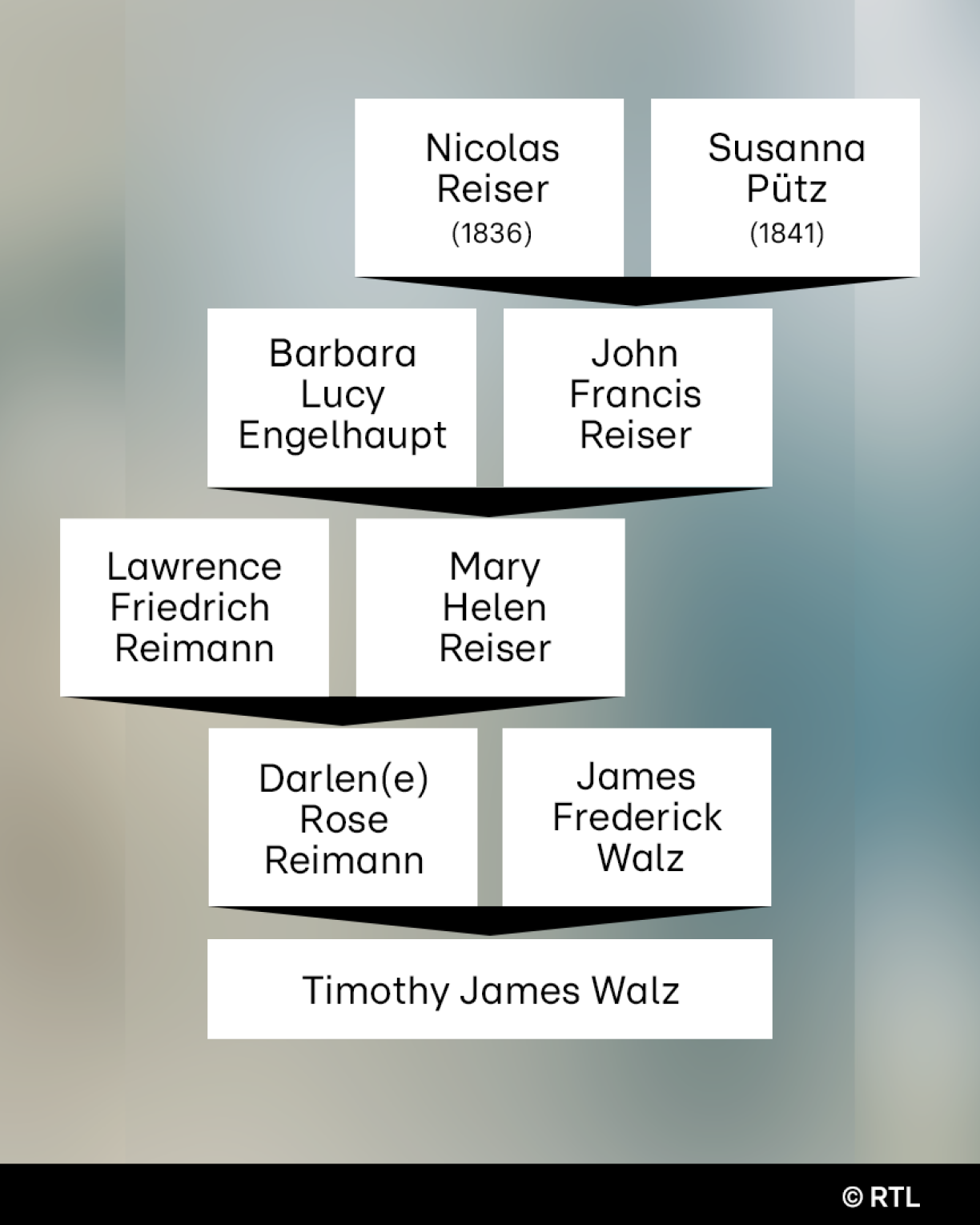 Ma tatsächlech huet den Tim Walz vu Säite vu senger Mamm Virfaren, déi zu Lëtzebuerg gelieft hunn. Konkret war dat den Nicolas Reiser, deen 1836 zu Lëtzebuerg gebuer ass, sou Informatioune vu Luxroots.
