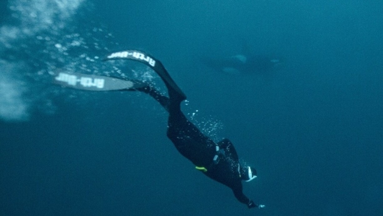 Mat 120 Meter an dräi Minutten ass dem Fransous Arthur Guérin-Boëri e weidere Rekord am Apnoetauchen ënnert dem Äis gelongen. Elo huet hien en neien Challenge gesicht. An de kalen arktesche Gewässer vun Norwegen trotzt hien net just de batterkalen Temperaturen an der Däischtert, hie geet do och mat engem vun de gréisste Mieresraiber schwammen - mat Killerwalen.