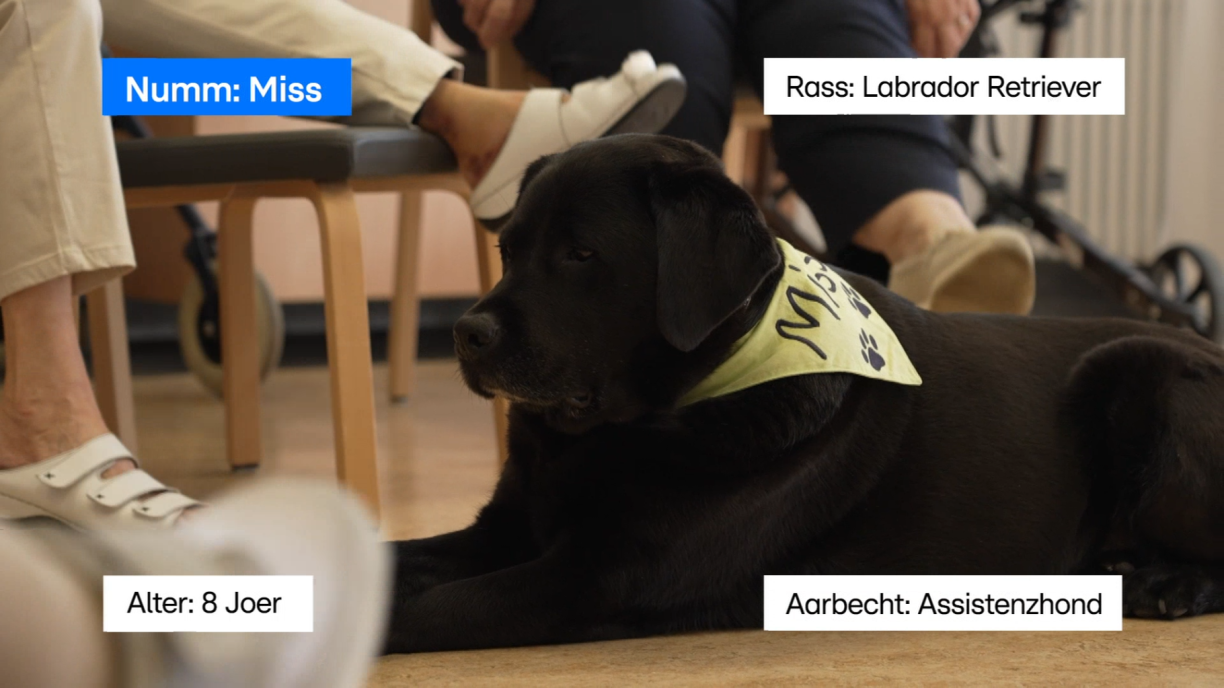 Et ass een eenzegaartege Projet zu Lëtzebuerg: Een Assistenzhond an der Klinik. D’Miss ass zanter knapp 5 Joer beim Tessy Ruppert. D’Infirmière hat ee Konzept geschriwwen an een Assistenzhond ugefrot. Ugangs fir an engem Altersheem ze schaffen, elo fir am CHDN zu Wolz an eemol d’Woch op der Palliativstatioun zu Ettelbréck. D’Miss ass duerch d’Amicale vun der Schoul fir Assistenzhënn (ASA Asbl) finanzéiert an duerch Handi’chiens ausgebilt ginn. Seng Aufgab ass et, d’Kinéen an d’Ergotherapeuten an hiren Therapien ze ënnerstëtzen an der Geriatrie a bei der Reeducatioun.