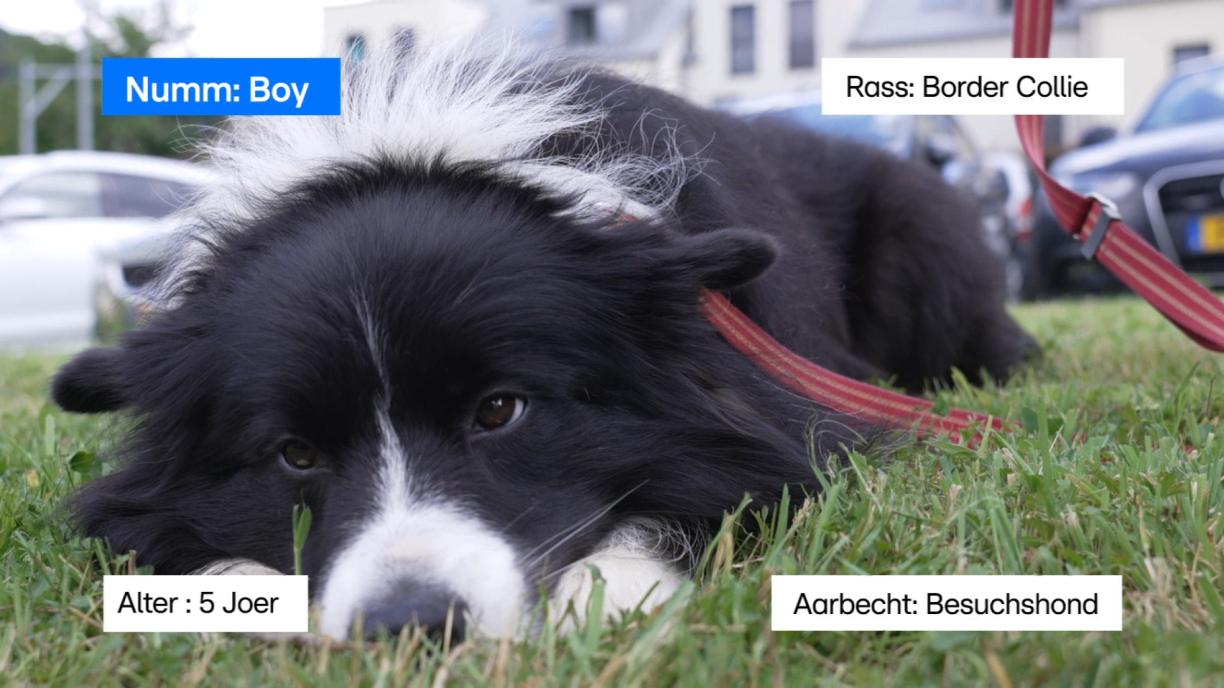 “A wann ech aus iergendenger Ursaach eng Zäit net ka kommen. An ech komme rëm, da kritt een direkt gesot, ‘De Boy war awer elo scho laang net méi hei!’. Dat heescht, si vermëssen hien och wierklech”, erzielt d’Nelly Baden. Si huet virun zwee Joer d’Ausbildung mam Boy bei Dogs4Success gemaach.