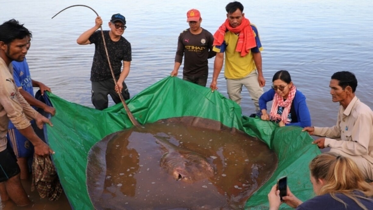 Gefaange gouf de sougenannten “Séisswaasserstiechrochen” an der nërdlecher Provënz Stung Treng am Floss Mekong. Dëst mellt eng international Experten-Ekipp vum US-finanzéierte Projet “Wonders of the Mekong”. Deemno gouf de Fësch gewien a gemooss, ier e rëm fräigelooss gouf.
