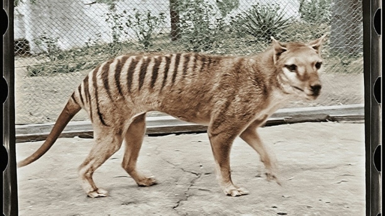 De “Beutelwollef”, dee wéinst sengem gesträifte Pelz Tasmaneschen Tiger genannt gëtt, huet an Australien an op der Insel Nei Guinea gelieft, éier en virun 85 Joer ausgestuerwen ass.