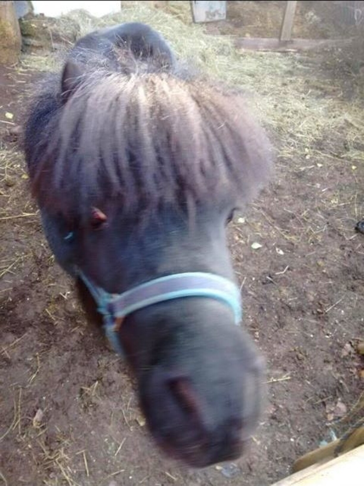 Dat schwaarzt Shetlandpony hat donieft nach en Halfter un, wat opfälleg war. Hien huet den Drot ronderëm direkt kontrolléiert a konnt hei näischt Verdächteges feststellen. Och ware keng Spure vun engem Auto ze fannen. Hien huet an der Regioun nogefrot, iwwer Internet nom Besëtzer gesicht an och bei der Police gemellt, ma bis elo gouf et nach keng Indicen, wien de Besëtzer kéint sinn.