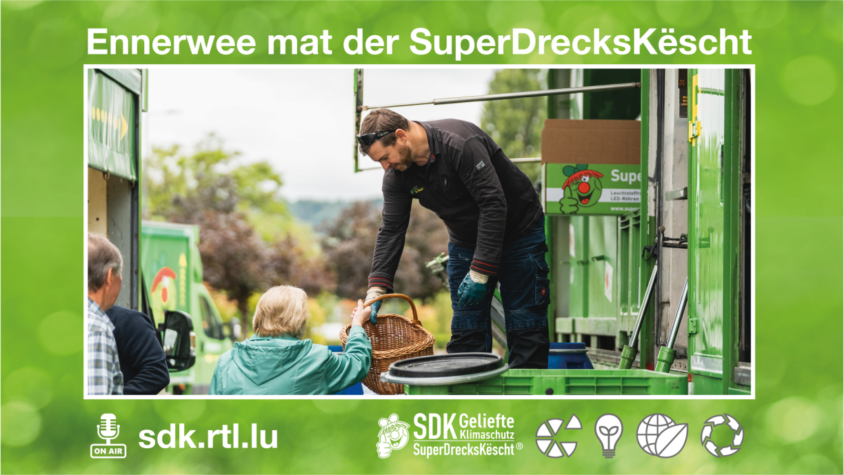 Den Thomas Hoffmann vun der Superdreckskëscht këmmert sech em intern Froe vu Klimaschutz an Nohaltegkeet bei der SDK. Doduerch datt d’Superdreckskëscht sech mam Entsuerge vun Offäll befaasst, huet dat natierlech och e positiven Impakt op de Klimaschutz.