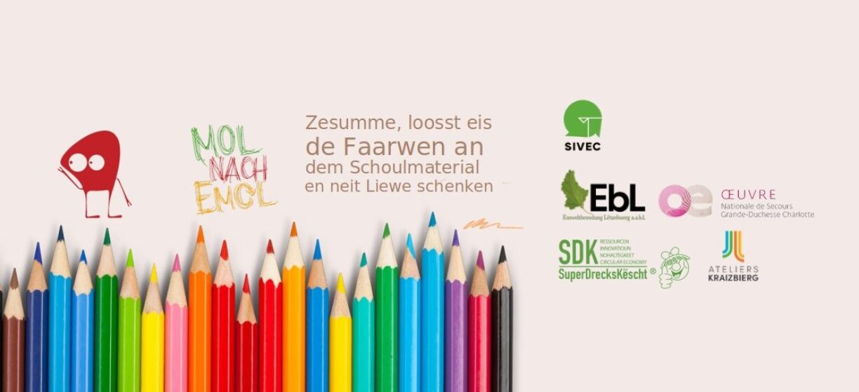 D’lescht Woch hate mir Iech schonn de Projet “Mol nach emol” vun der Superdreckskëscht kuerz virgestallt. Dee versicht jo d’Kreeslafwirtschaft an de Lëtzebuerger Schoulsystem ze integréieren andeems an de Schoule recuperéiert Schoulmaterial benotzt gëtt. De Camille Ney seet eis elo, wat do derhannert stécht...