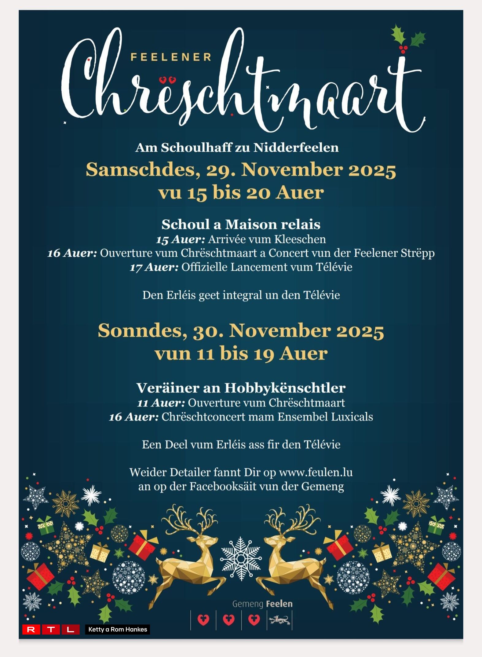 Chrëschtmaart zu Feelen mam Lancement vum Télévie (29.11.25)