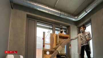 Den Amenagement vun der Déierepensioun ass eng Kooperatioun mat de betreite Leit aus den aneren Ateliere vun der Apemh. Fir d’Kaze sinn do Krazbeem, Spillsaachen, Klotterméiglechkeete gemaach ginn a fir d’Hënn ginn d’Hondsbetter gebaut, Matrassen a Decke gebitzt. Och do gëtt Integratioun a Kreativitéit grouss geschriwwen.