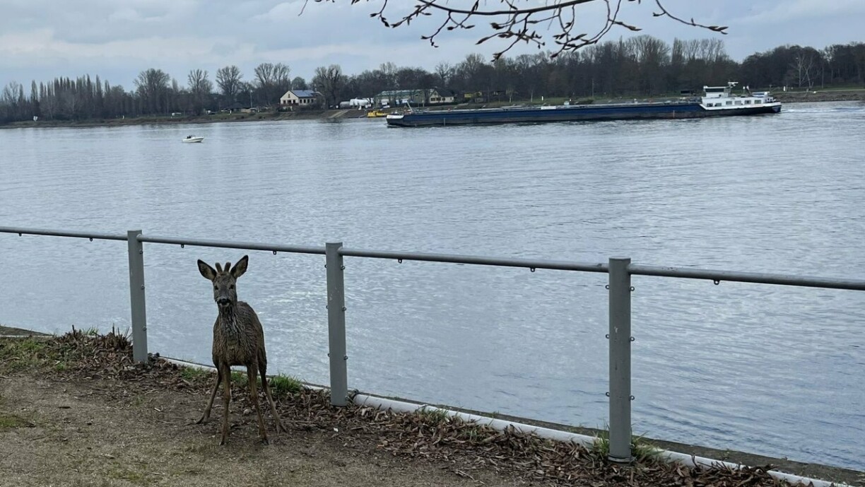 Vum Mupp opgescheucht, sinn d’Réi an de Rhäin gesprongen an eriwwer op déi aner Ufersäit op Mainz geschwommen. Zwee vun den Déiere konnten um Ufer a Sécherheet bruecht ginn.