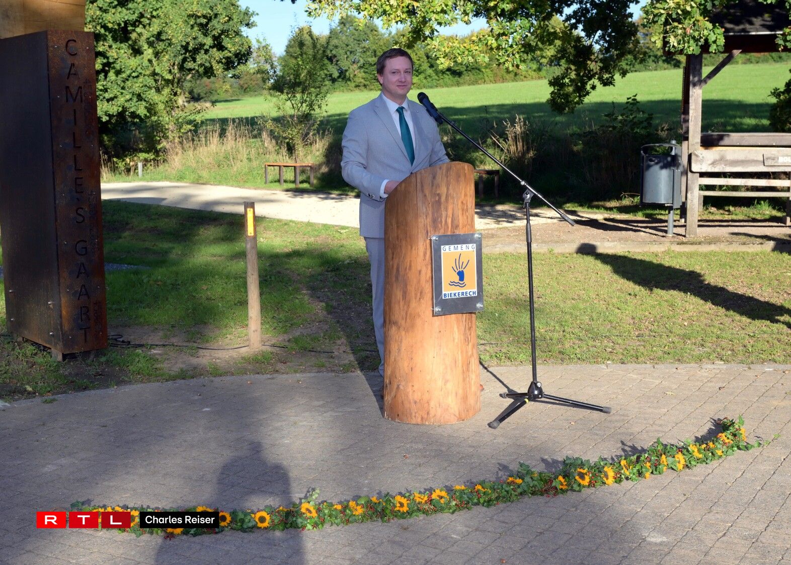 De Camille's Gaart - En Natur-, a Skulpturepad mat 15 Statiounen, wou Natur a Konscht zesummekommen, an deen un de Camille Gira, fréiere Buergermeeschter vu Biekerech a Staatssekretär fir Nohalteg Entwécklung an Ëmwelt, erënnert.