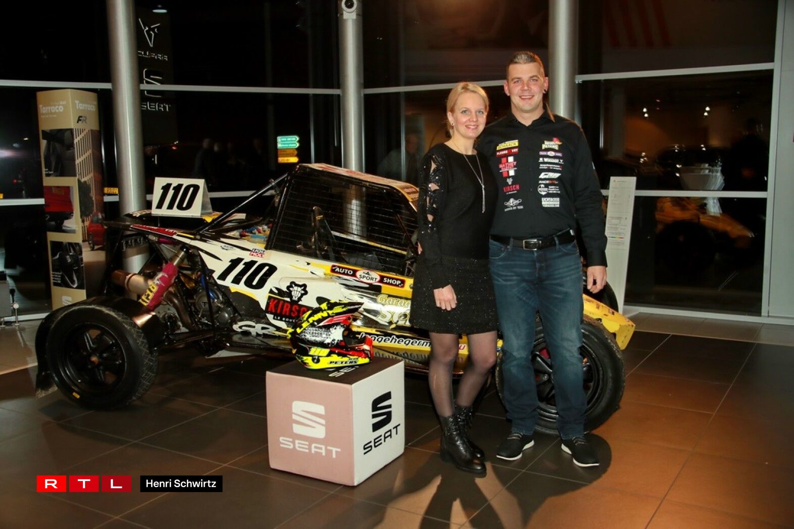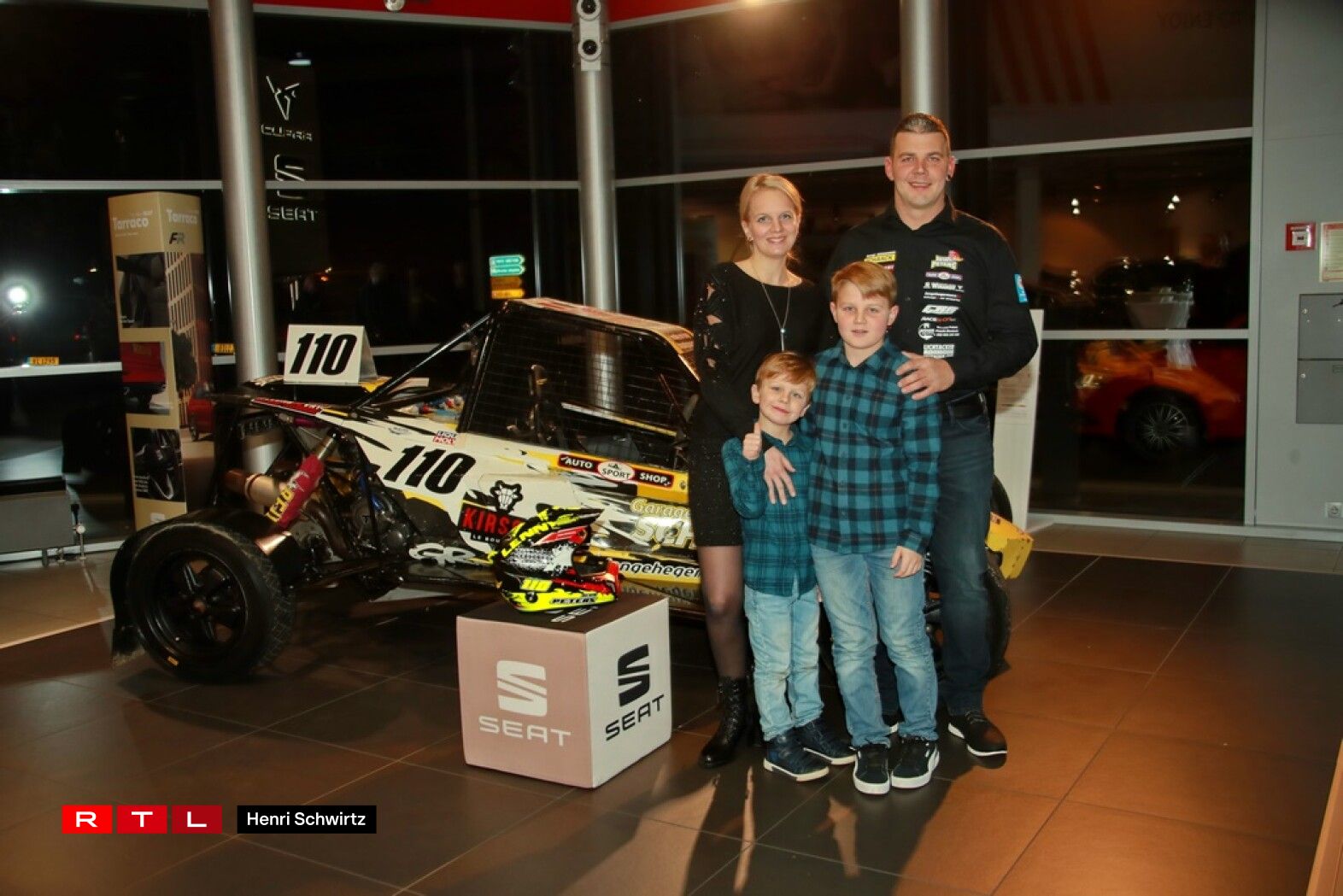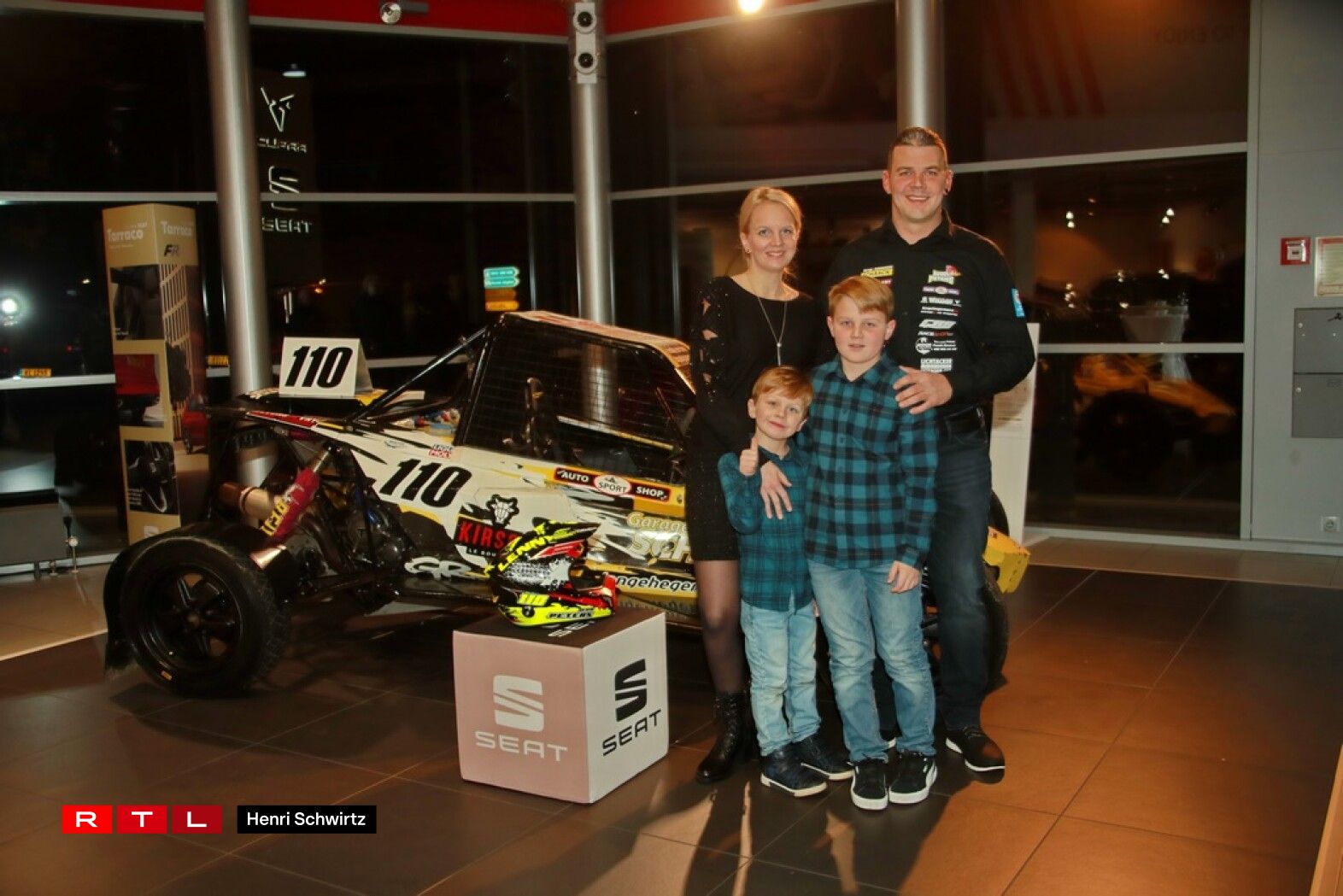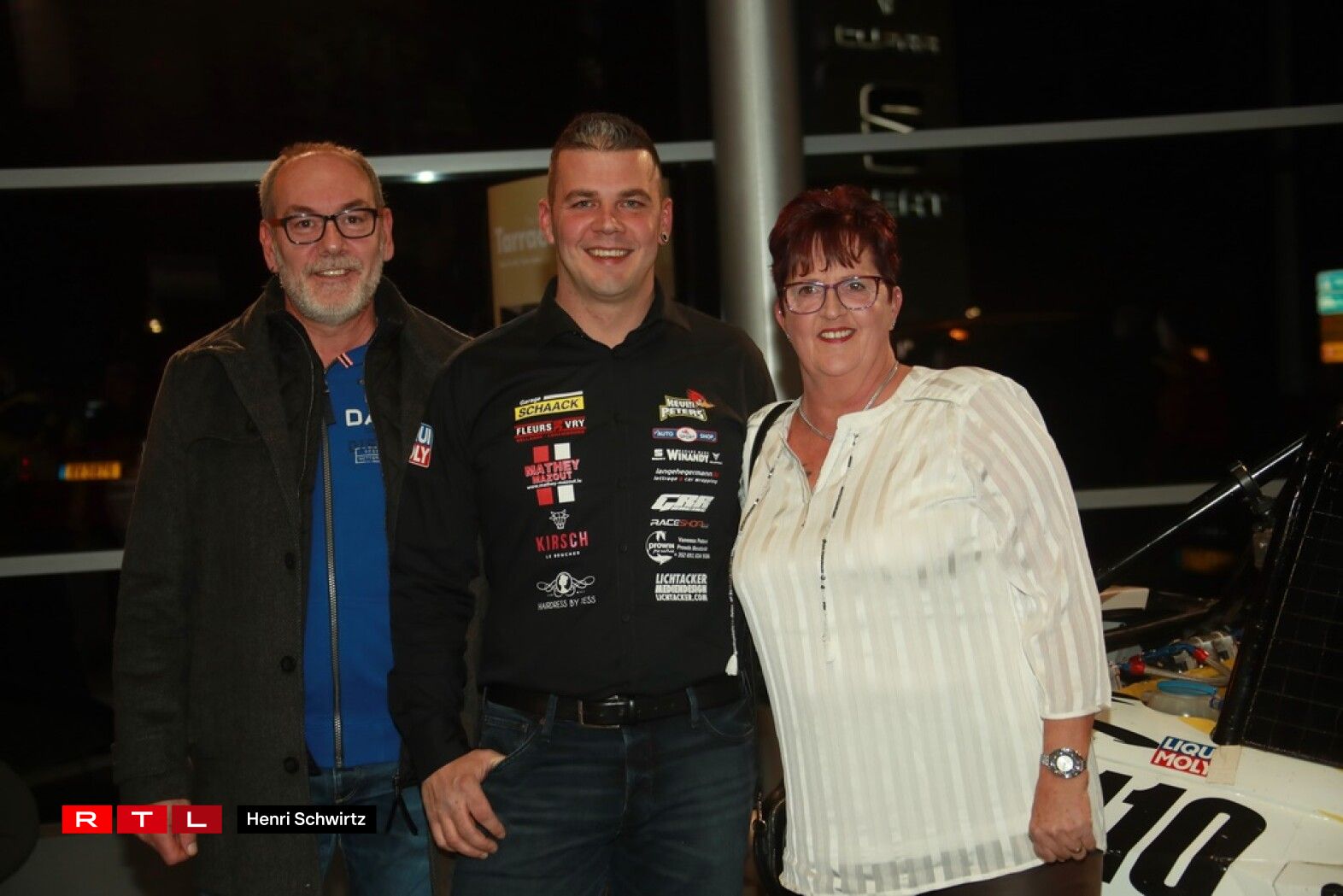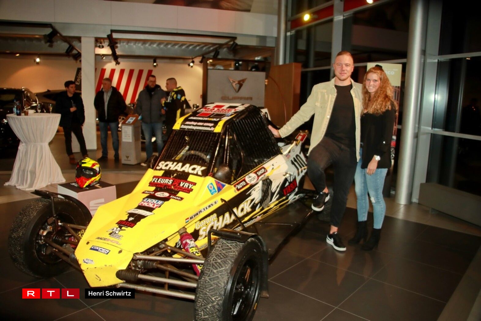De Kevin Peters, 2. an der Europameeschterschaft am Autocross op internationalem Niveau hat agelueden, fir säin Titel ze feieren.