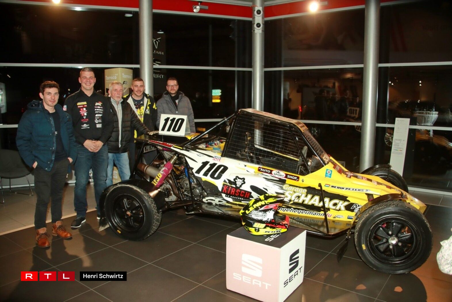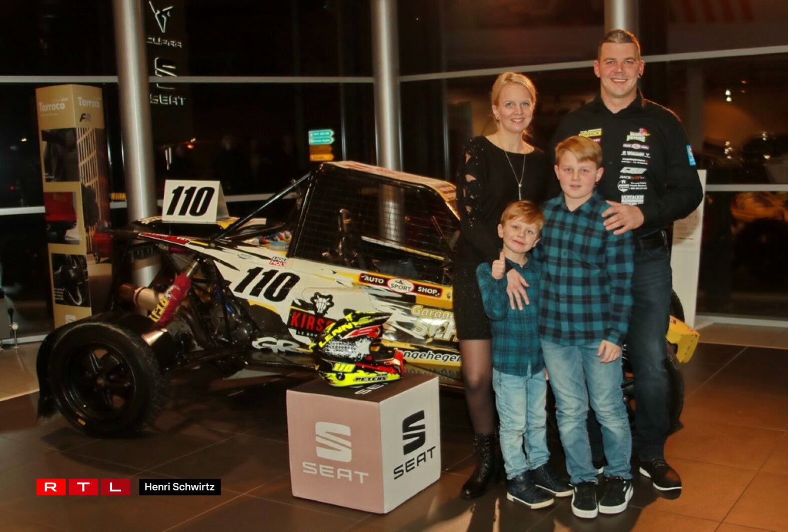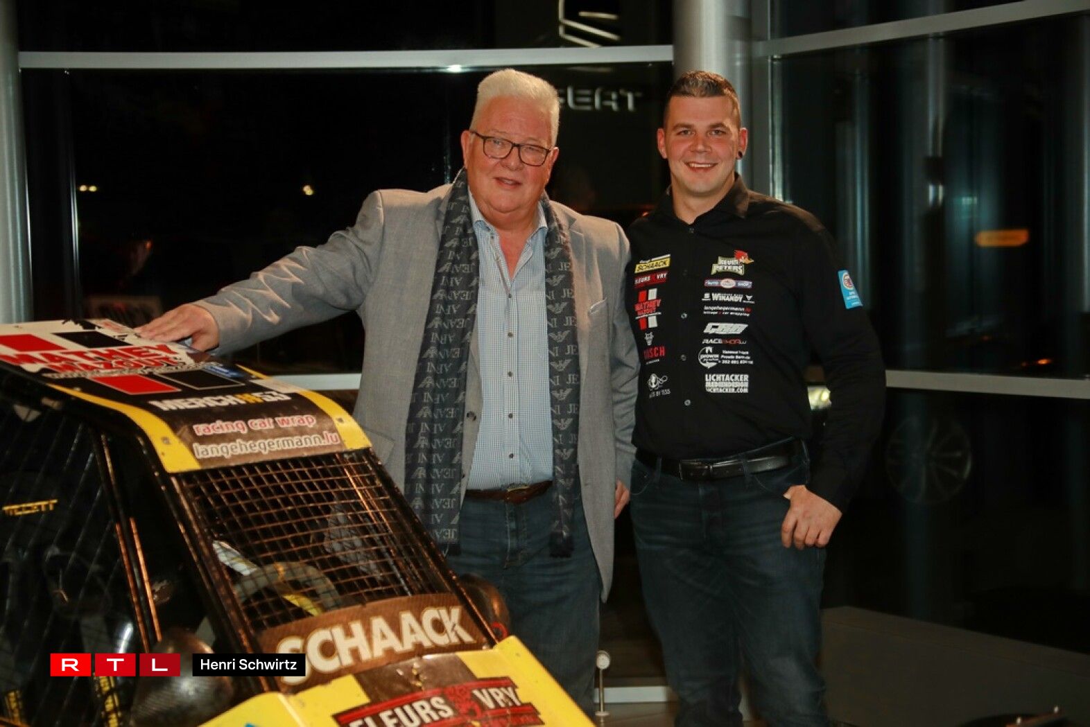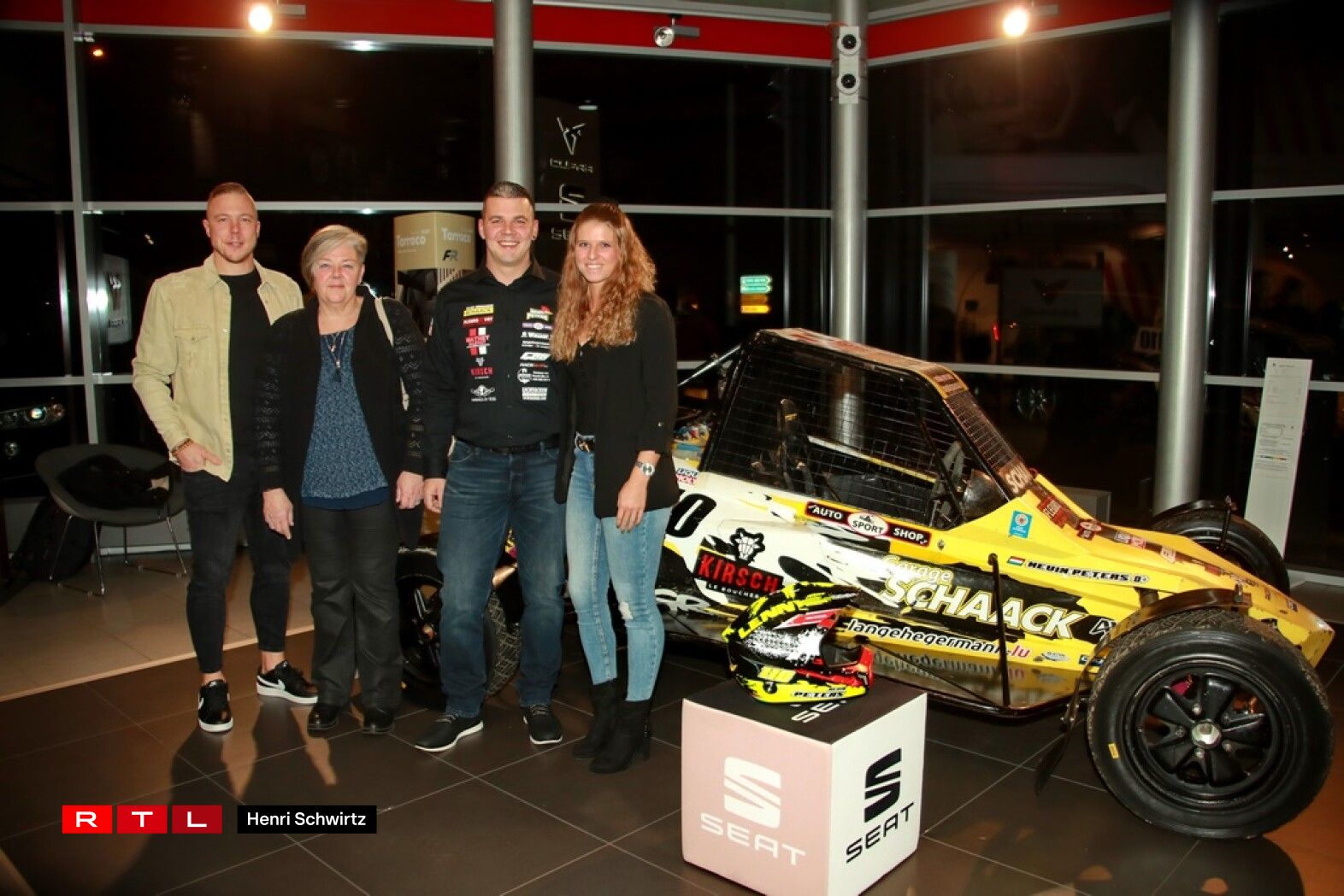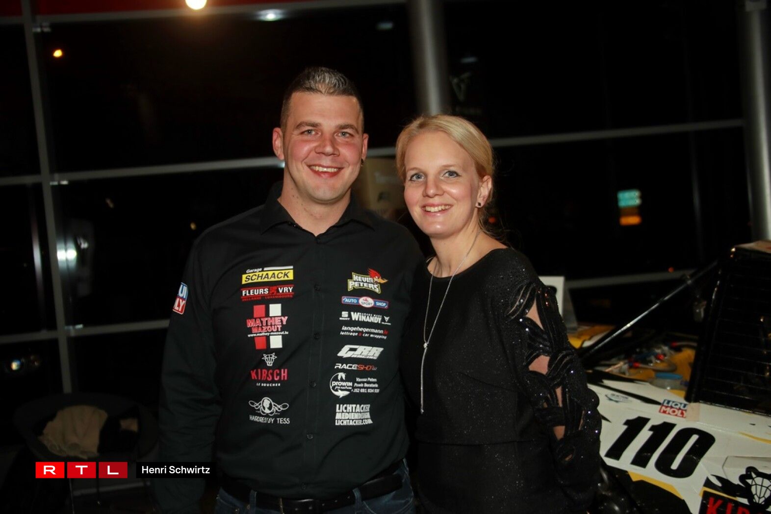 De Kevin Peters, 2. an der Europameeschterschaft am Autocross op internationalem Niveau hat agelueden, fir säin Titel ze feieren.