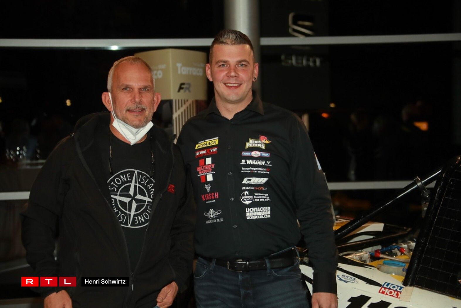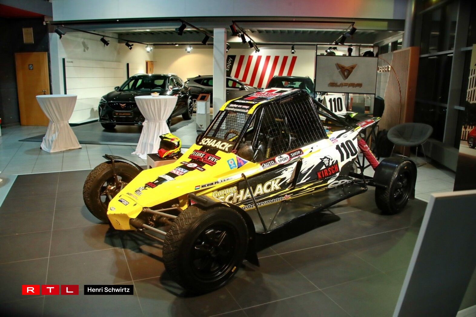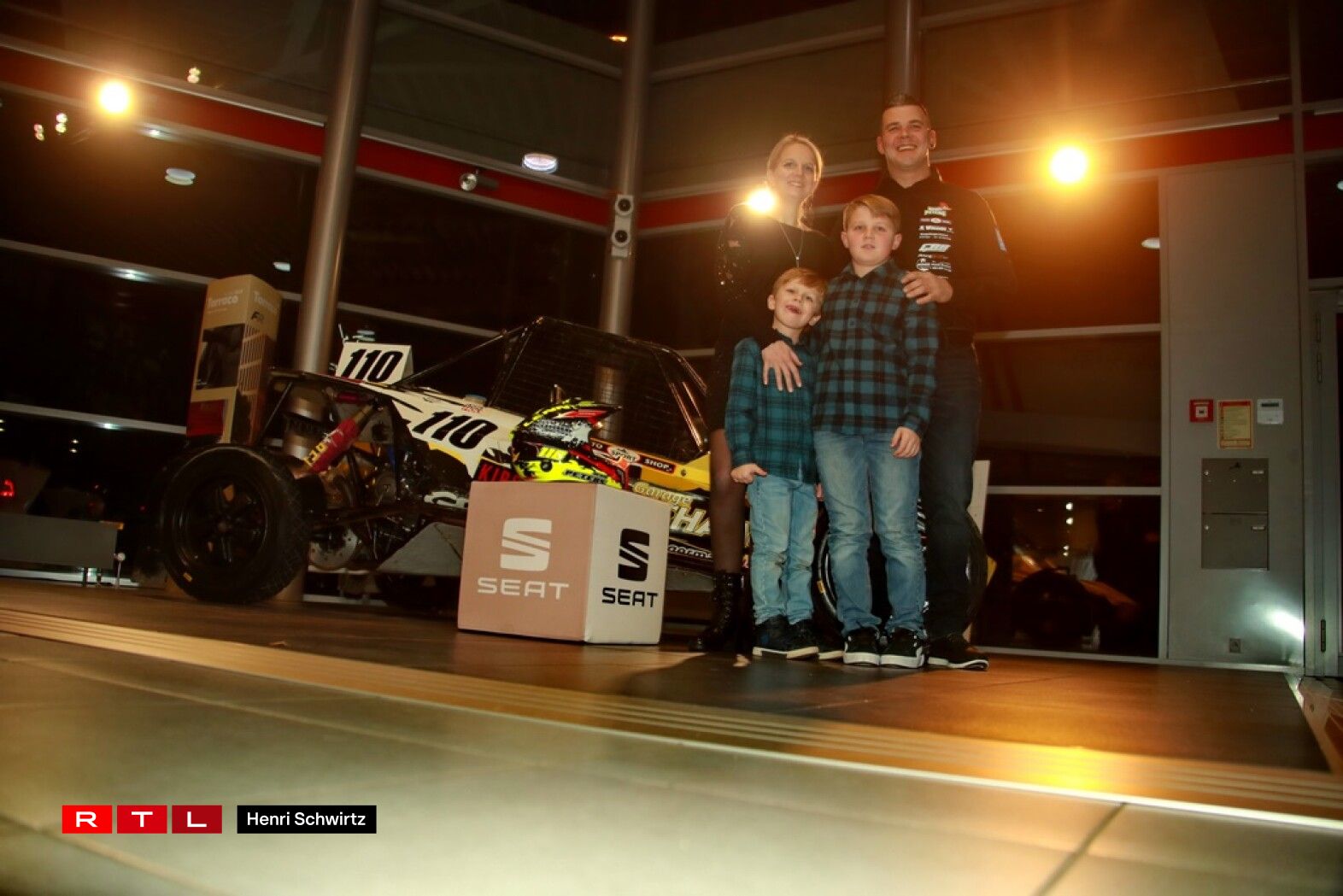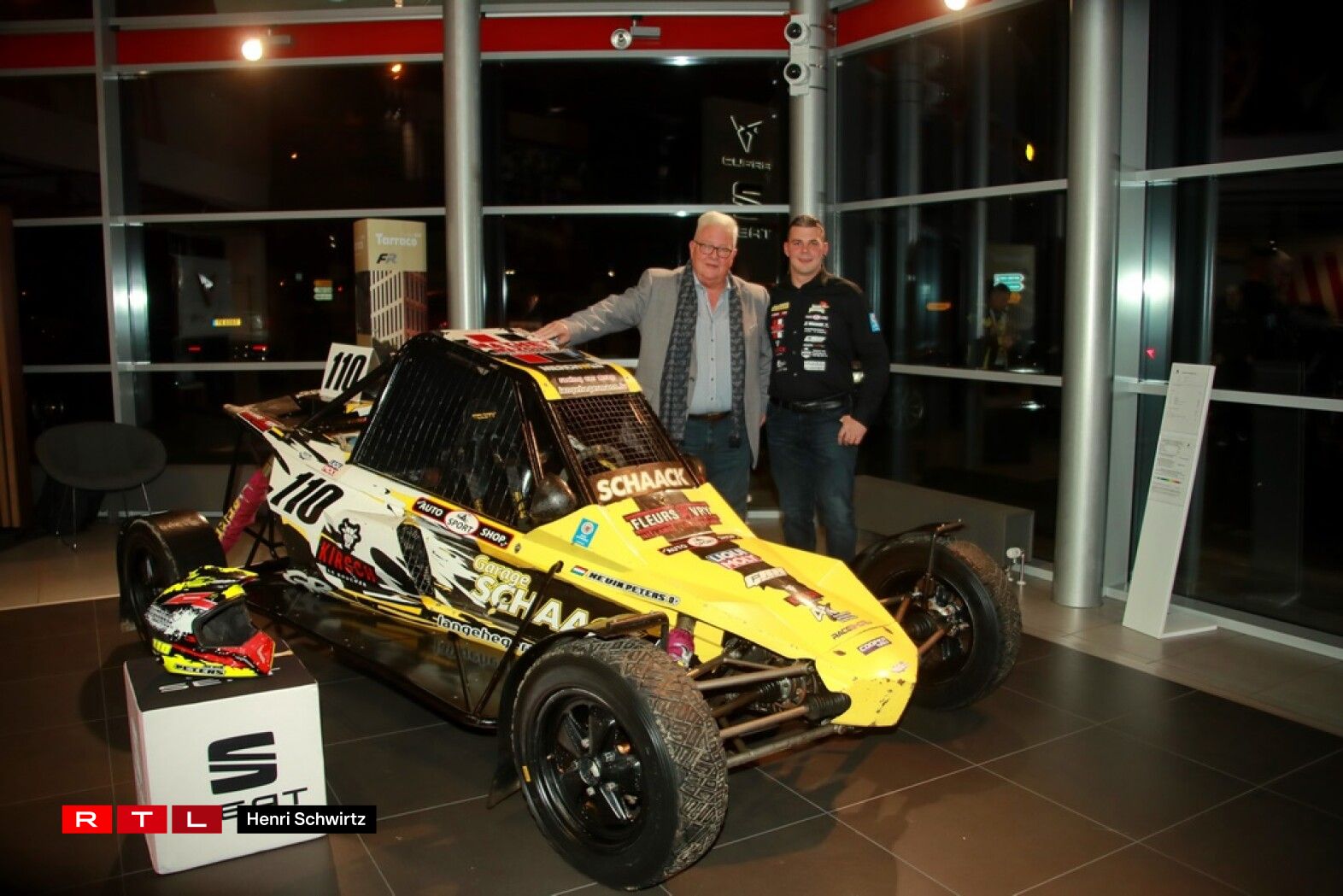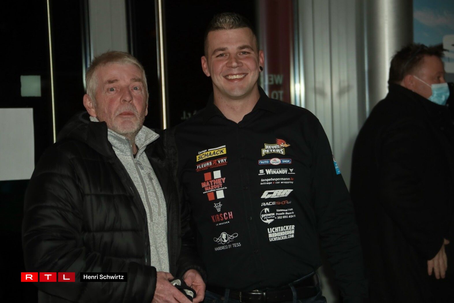 De Kevin Peters, 2. an der Europameeschterschaft am Autocross op internationalem Niveau hat agelueden, fir säin Titel ze feieren.