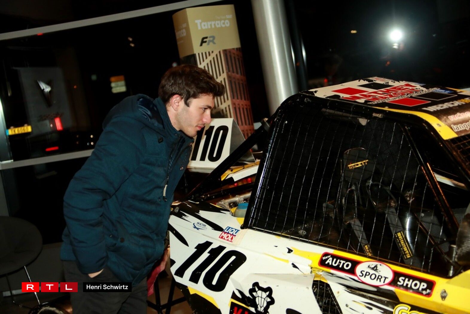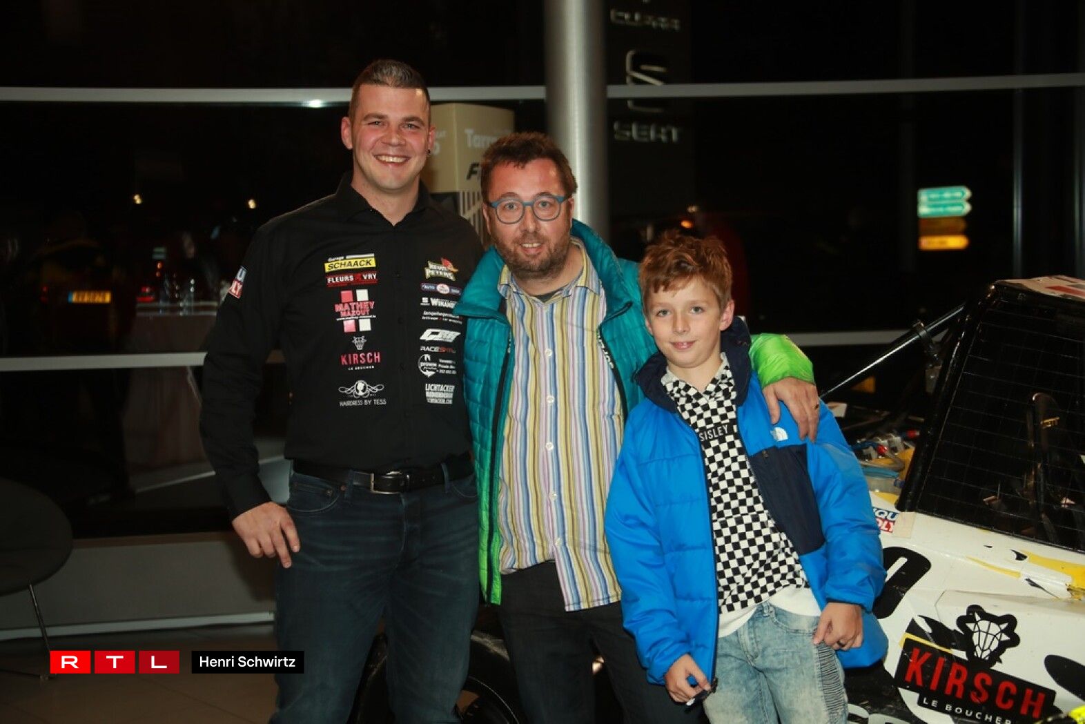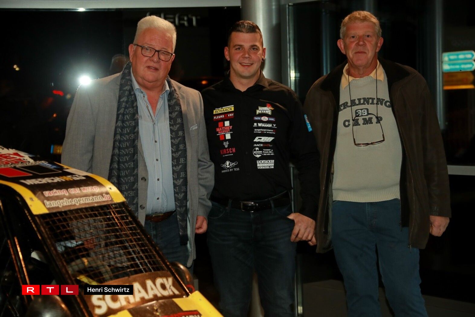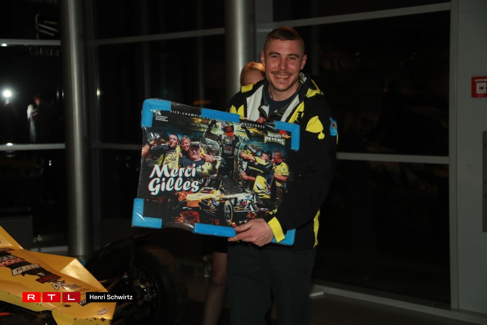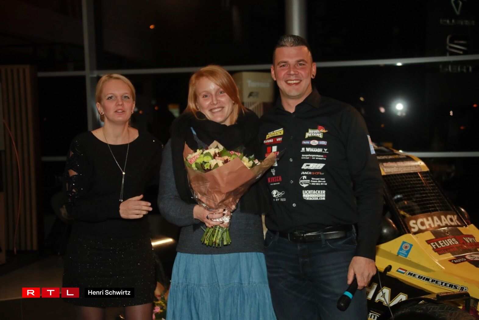 De Kevin Peters, 2. an der Europameeschterschaft am Autocross op internationalem Niveau hat agelueden, fir säin Titel ze feieren.