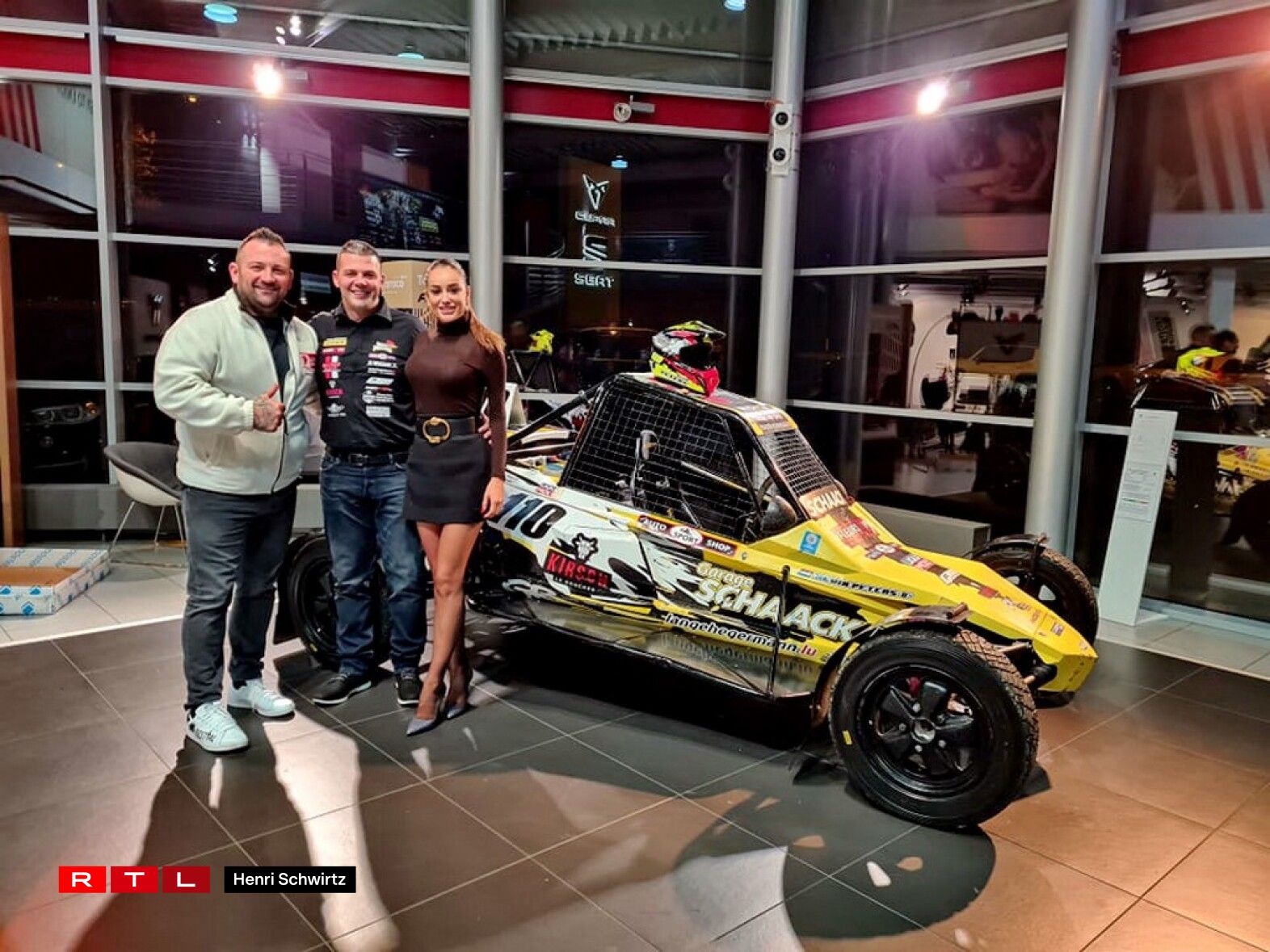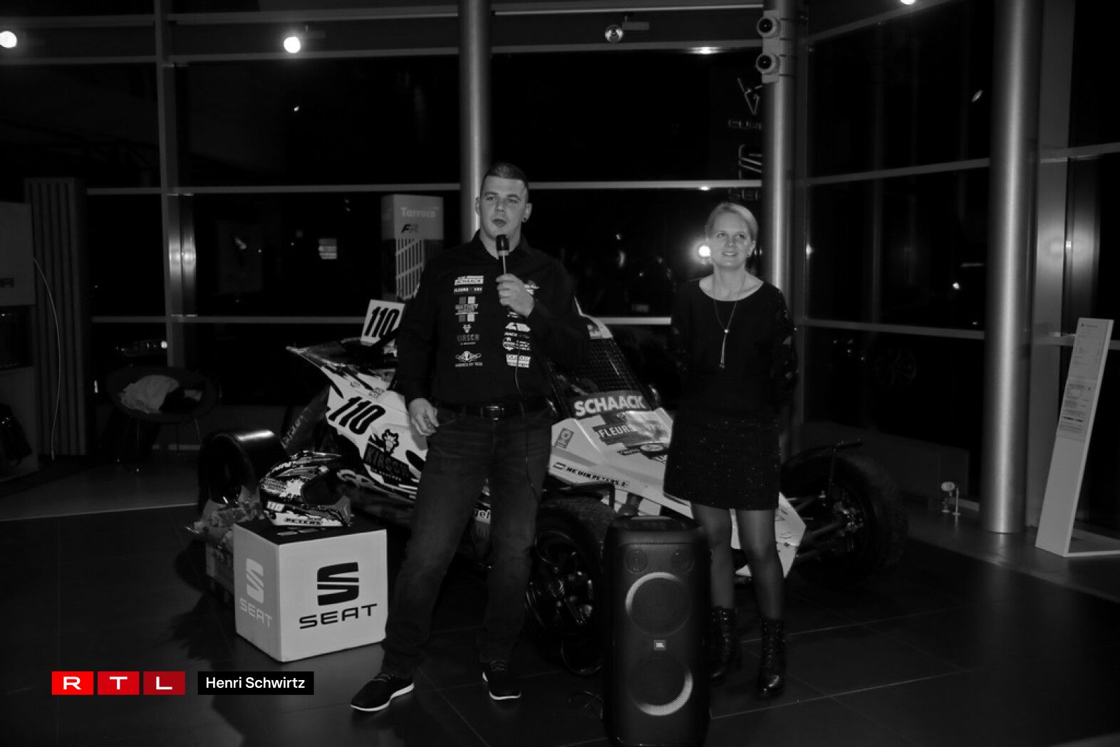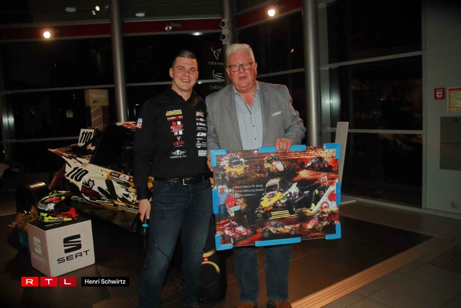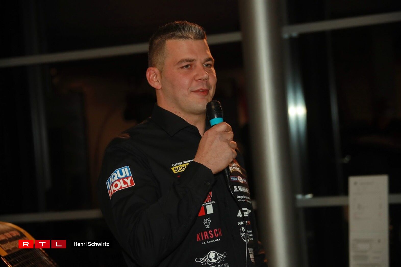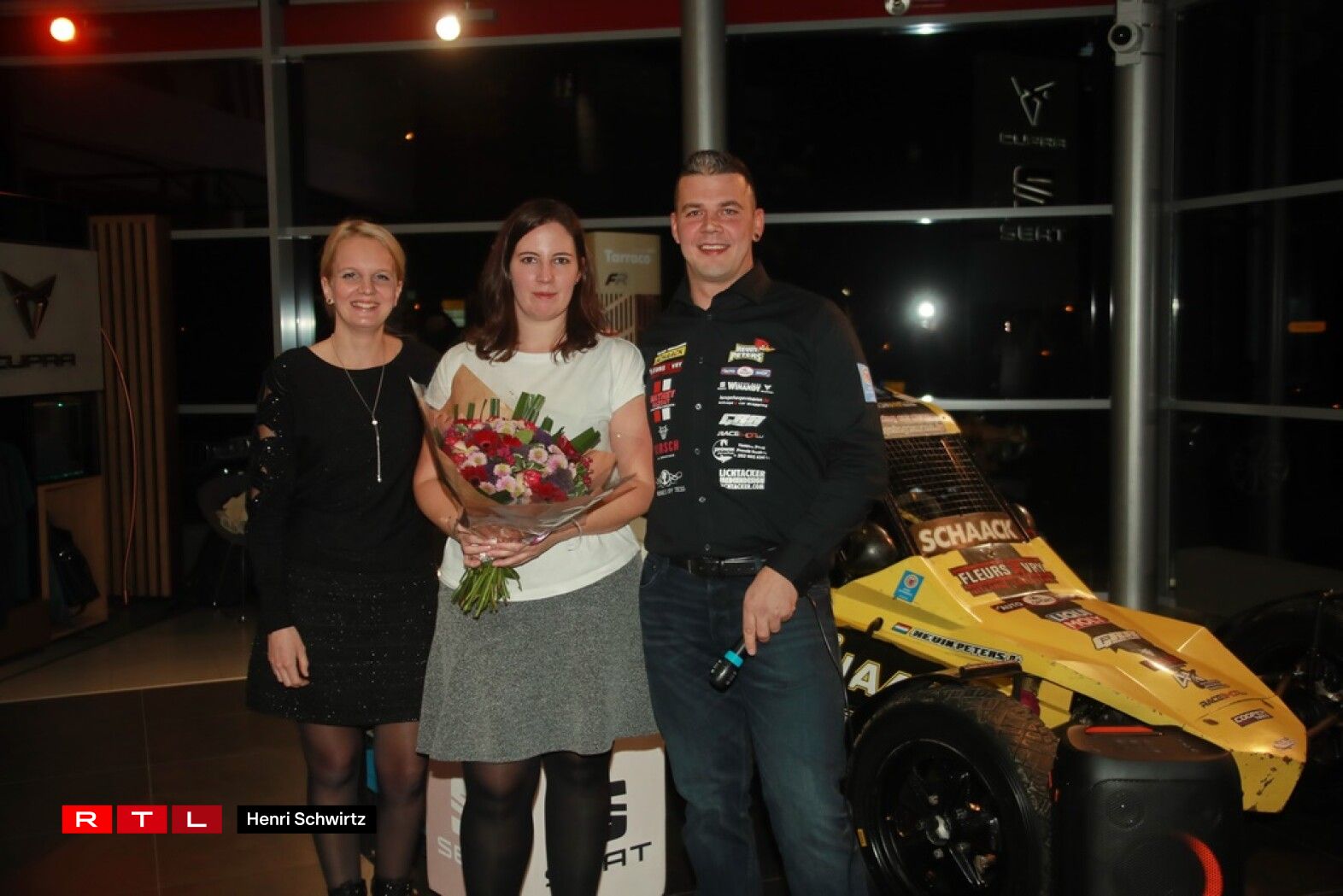 De Kevin Peters, 2. an der Europameeschterschaft am Autocross op internationalem Niveau hat agelueden, fir säin Titel ze feieren.