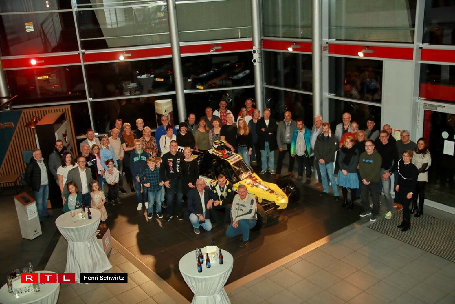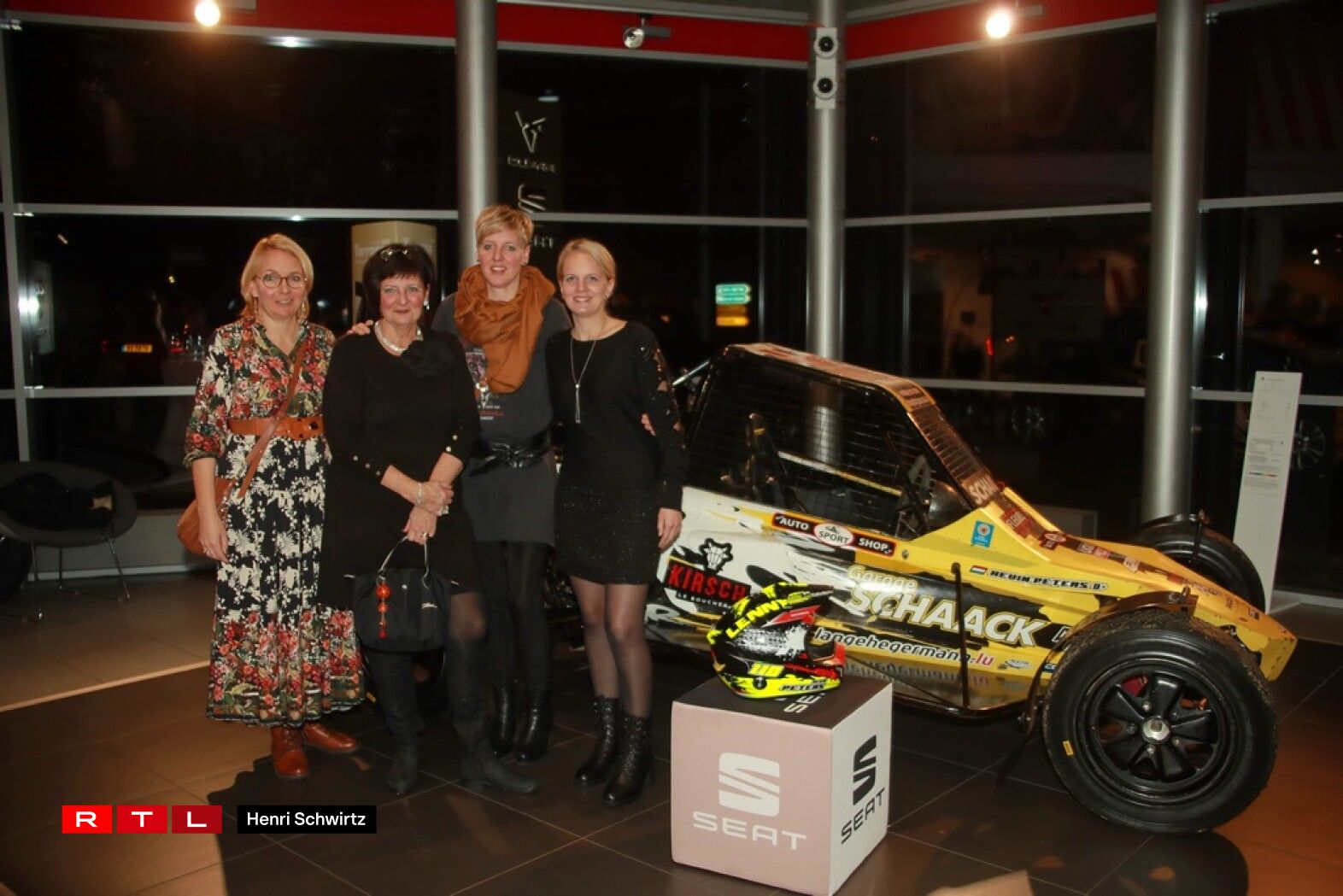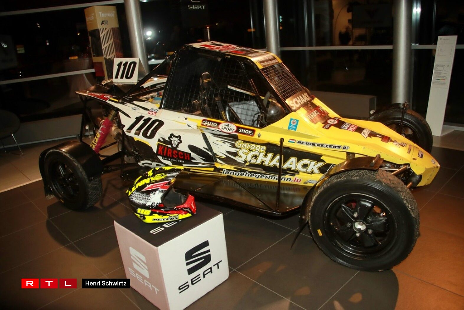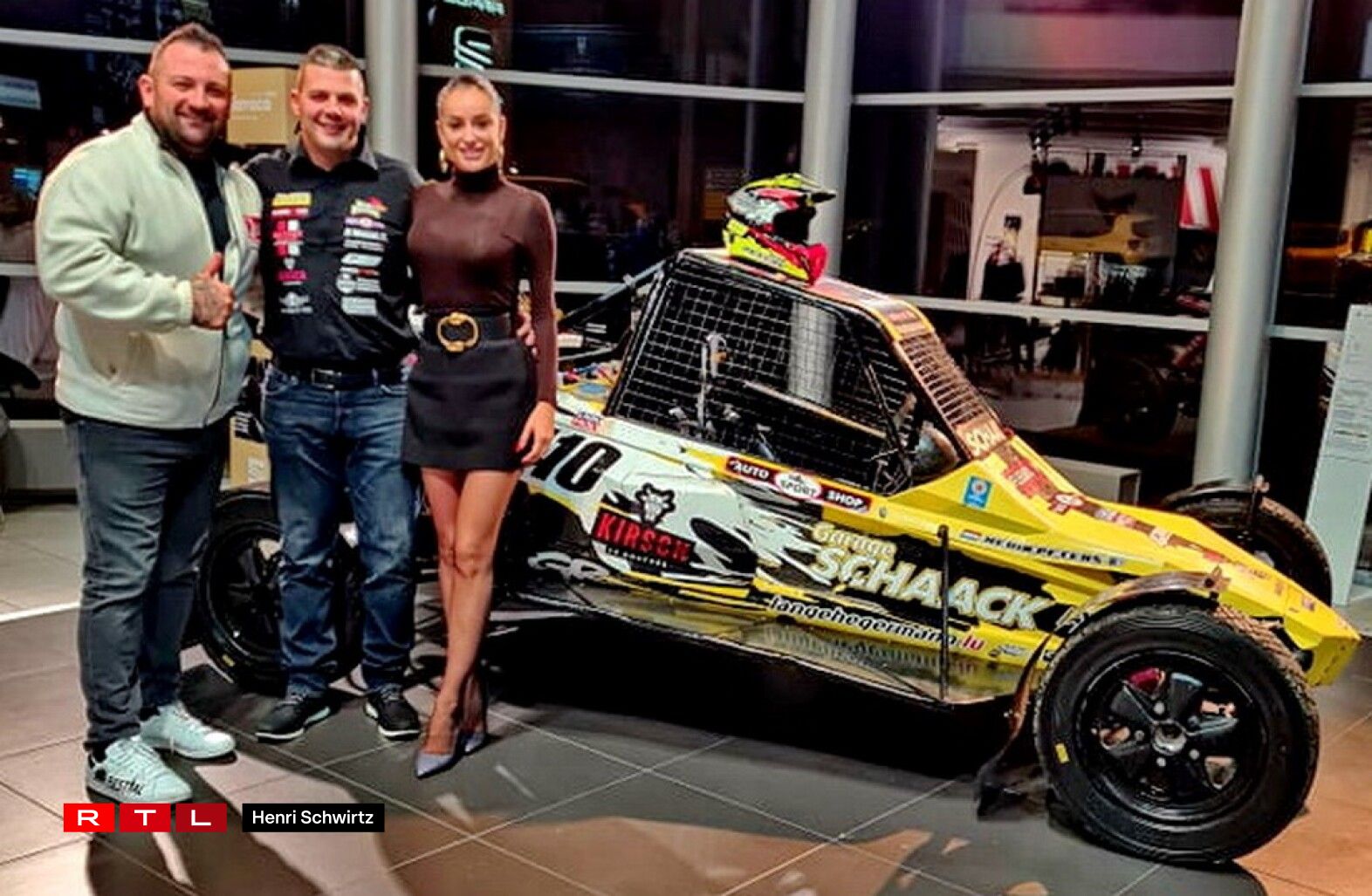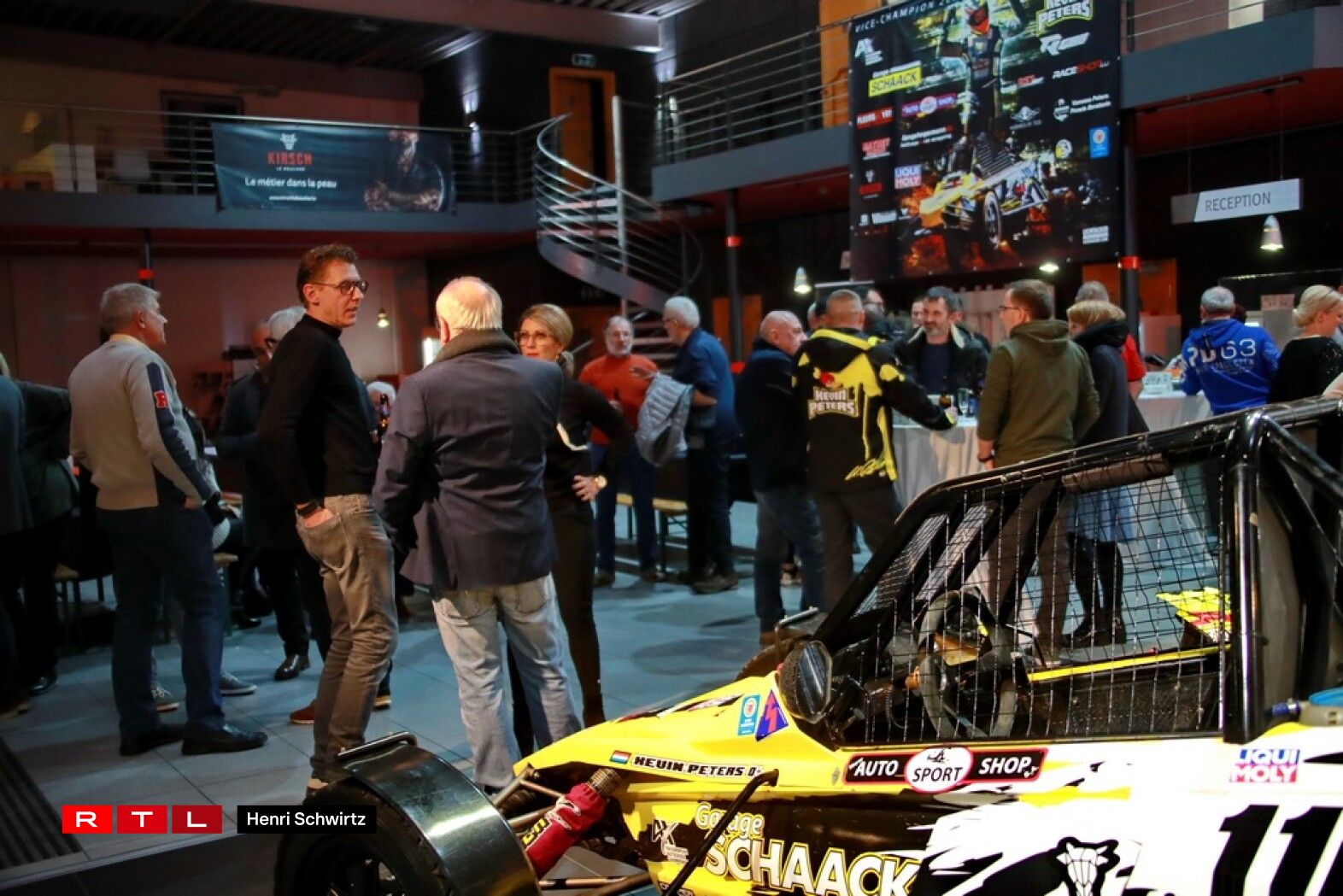 De Kevin Peters, 2. an der Europameeschterschaft am Autocross op internationalem Niveau hat agelueden, fir säin Titel ze feieren.