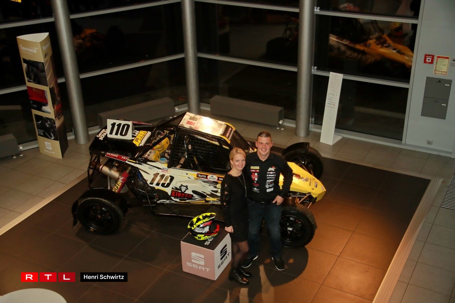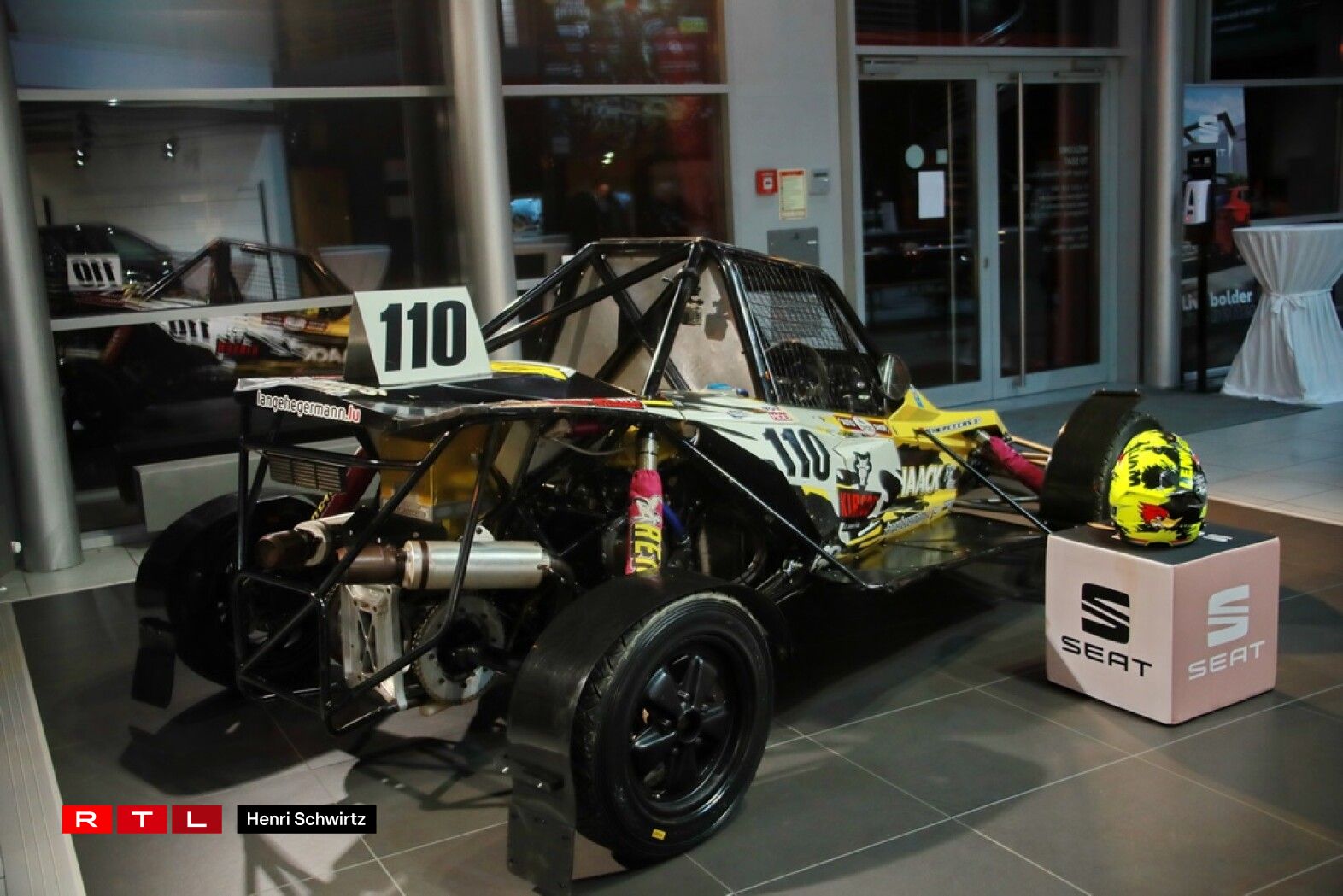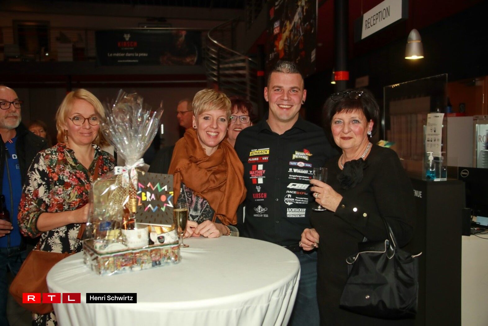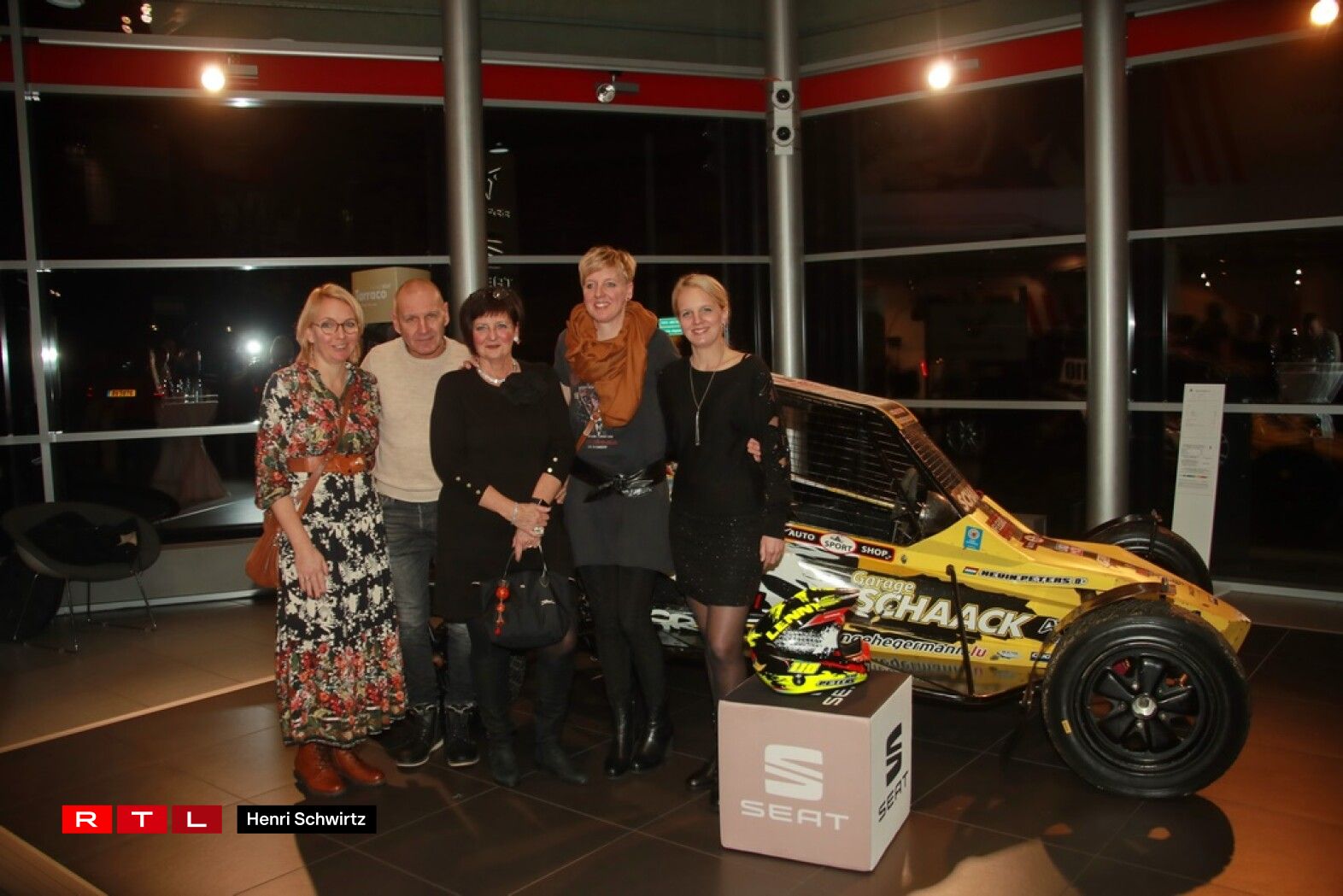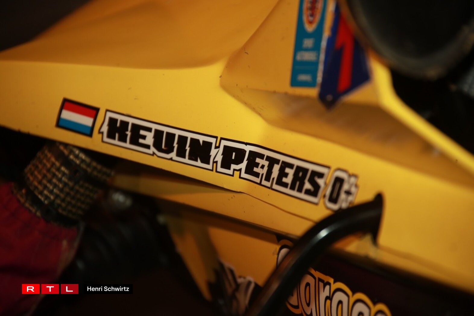De Kevin Peters, 2. an der Europameeschterschaft am Autocross op internationalem Niveau hat agelueden, fir säin Titel ze feieren.