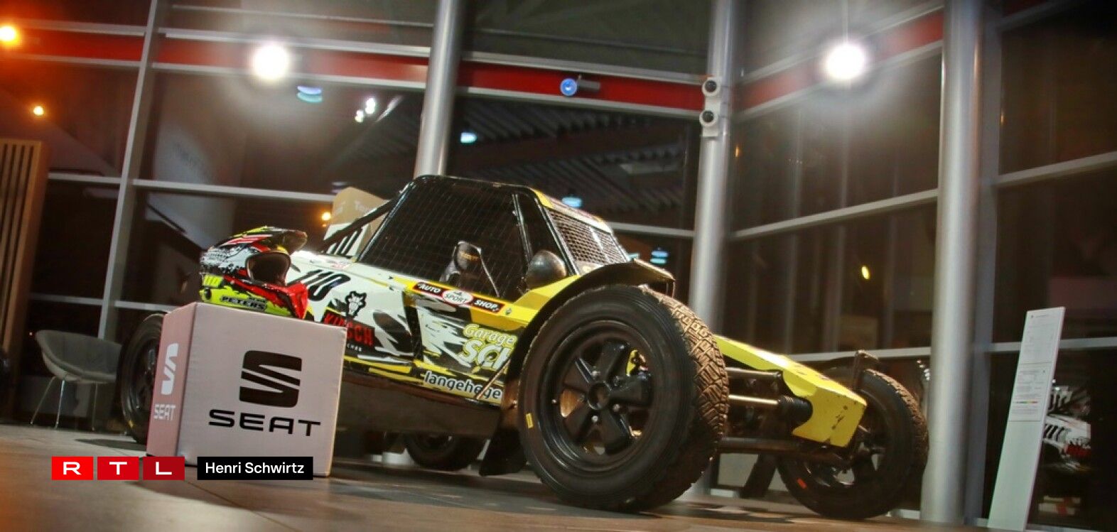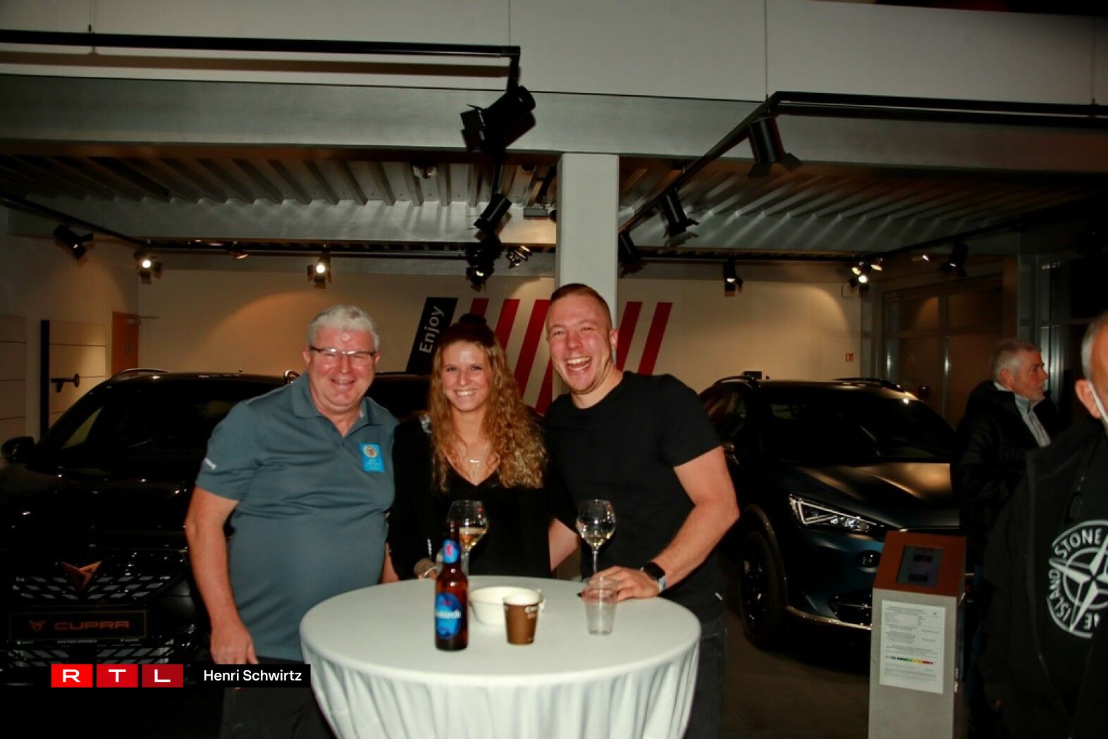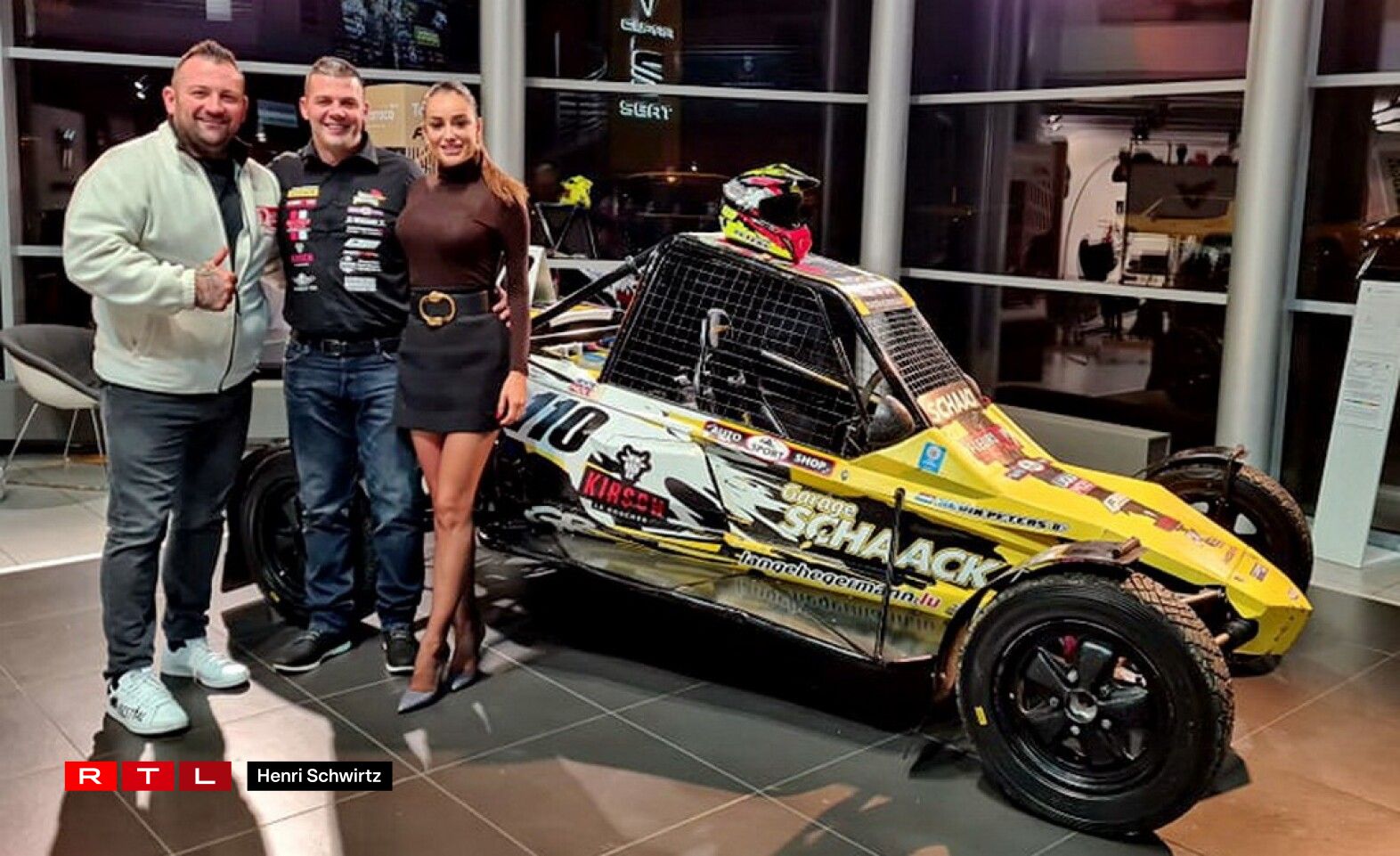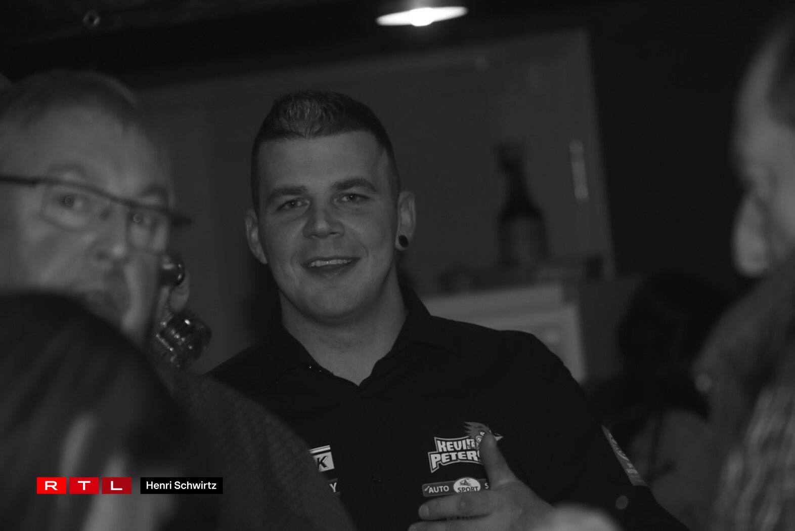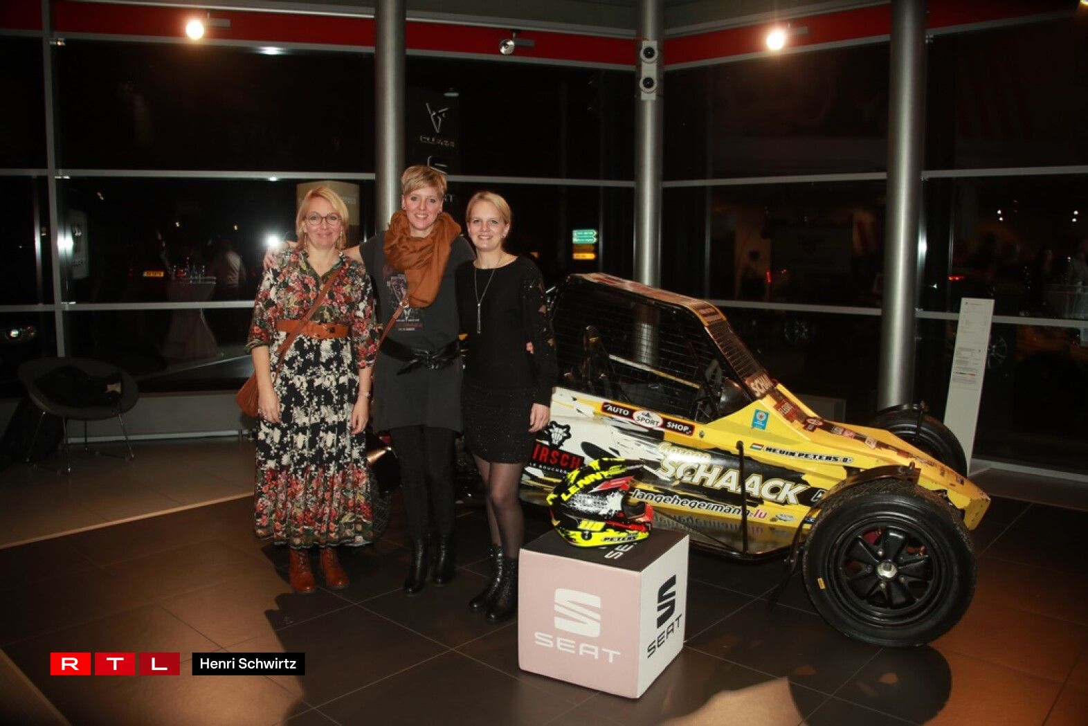 De Kevin Peters, 2. an der Europameeschterschaft am Autocross op internationalem Niveau hat agelueden, fir säin Titel ze feieren.