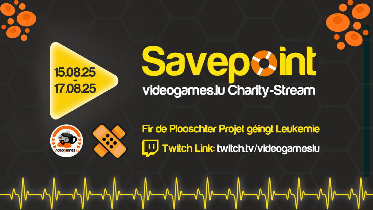 3 Deeg laang gëtt um “Savepoint Charity-Stream” Geld gesammelt, fir de gudden Zweck. En Revanche kréien d’Leit dann och eppes gebueden, nämlech e Livestream op deem 3 Deeg ouni gréisser Paus gezockt gëtt. D’Konzept gëtt et elo schonn e puer Joer a schéngt gutt bei de Leit ukommen. En änlech d’Konzept mam Numm AGDQ oder SGDQ gëtt et och an den USA, hei gi meeschtens Videospiller séier duerchgespillt (Speedrun) a Leit kënne wärend deem spenden. Hei ass et ganz normal, dass hei iwwert e puer Deeg e puer Milliounen Dollar zesummekommen.