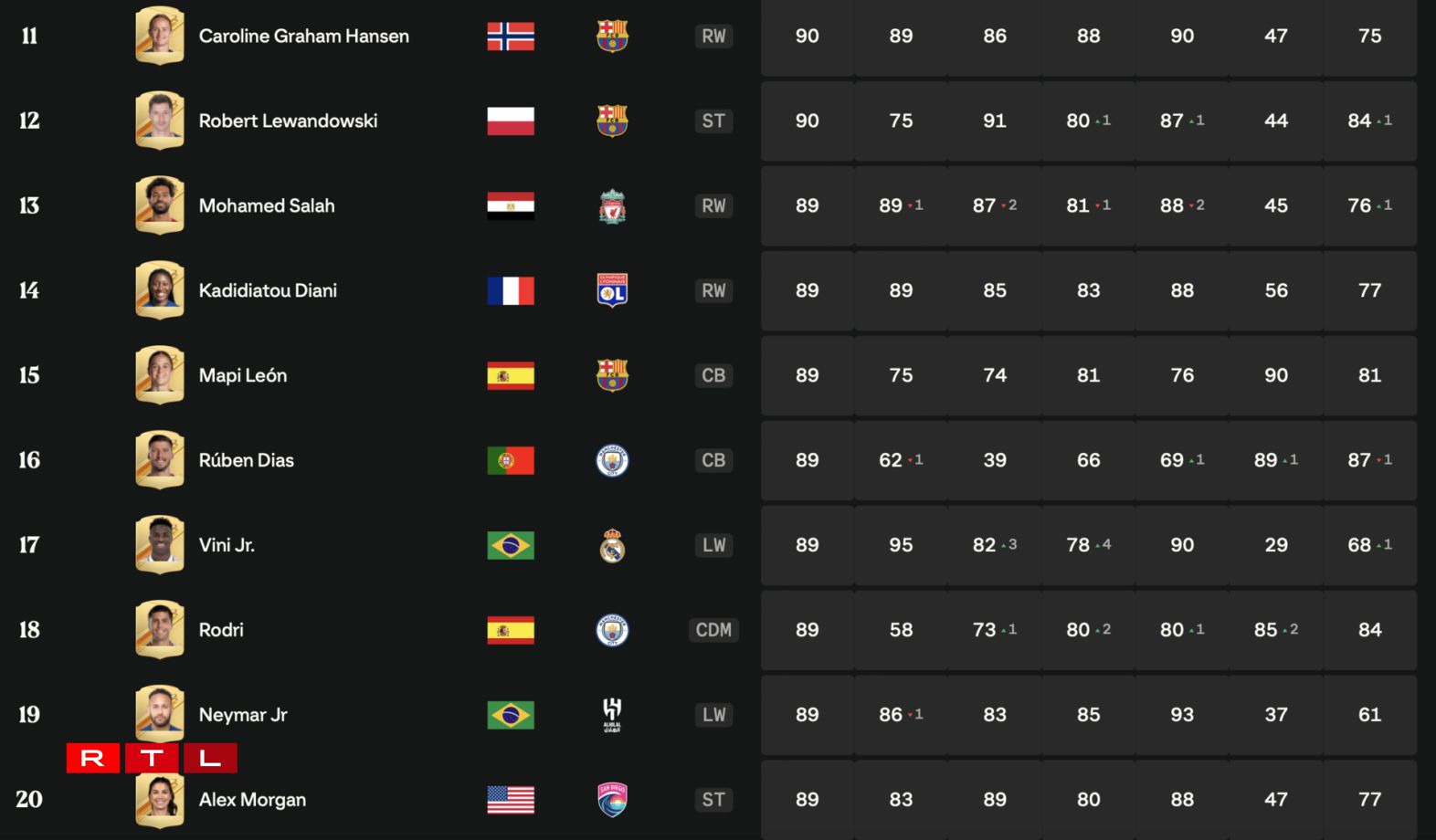 Den 12. September huet EA an engem Communiqué d’Wäerter vun de 24 beschte Spiller a Spillerinne verëffentlecht. Dobäi ware vill Fans vum Spill virun allem op d’Wäerter vun de Spillerinne gespaant. Dëst well ee fir d’éischte Kéier an der Geschicht vun der Futtballsimulatioun am Ultimate-Team-Modus souwuel mat Männer, ewéi och mat Frae spille kann an ee sech domadder eng Ekipp, déi aus Männlein a Weiblein besteet, zesummebaue kann.