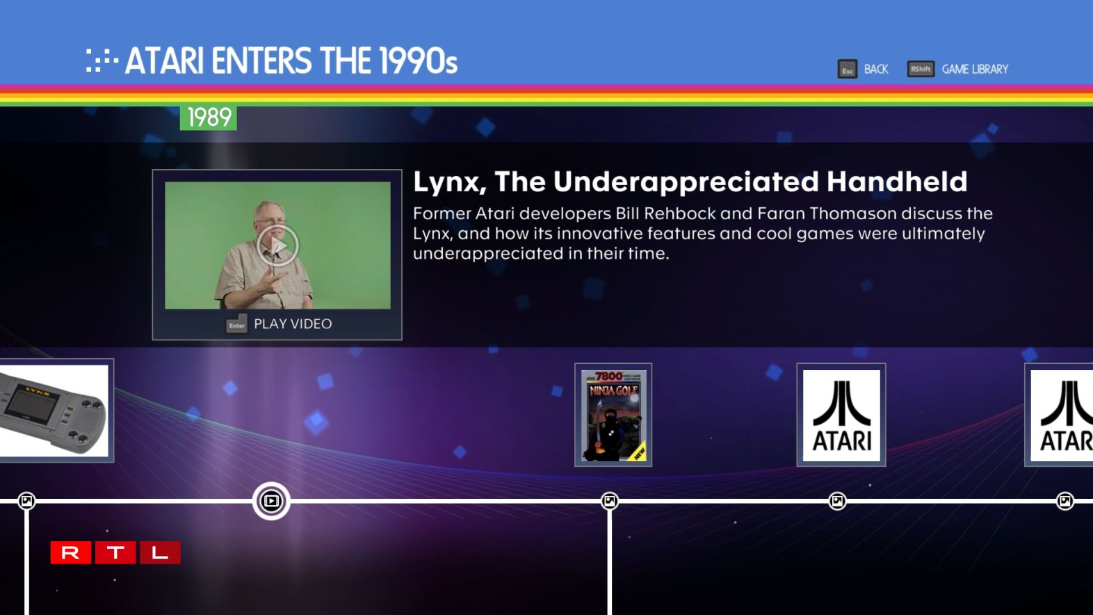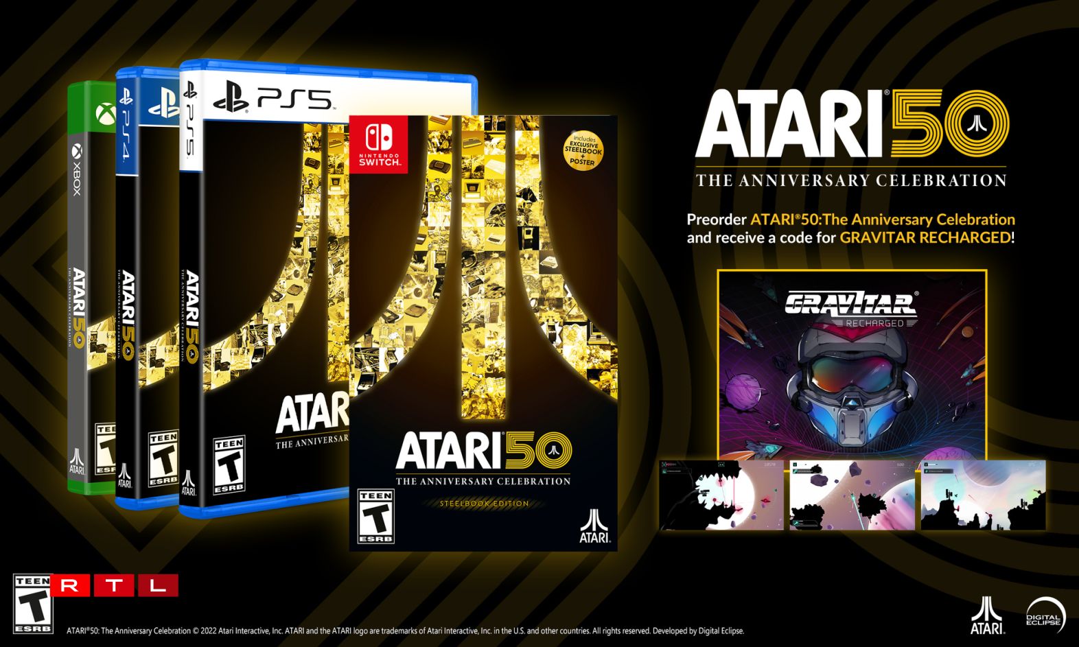 Esou ass an Zesummenaarbecht mam renomméierten Entwécklerstudio Digital Eclipse d’Spillsammlung Atari 50: The Anniversary Celebration entstanen. An dëser Kollektioun wäerten d’Fans vun Atari Zougrëff op méi wéi 100 al Atari-Spiller kréien, souwéi op eng interaktiv Geschicht iwwert de Betrib, wéi och op Interviewe mat deemolegen Entwéckler a Publisher.