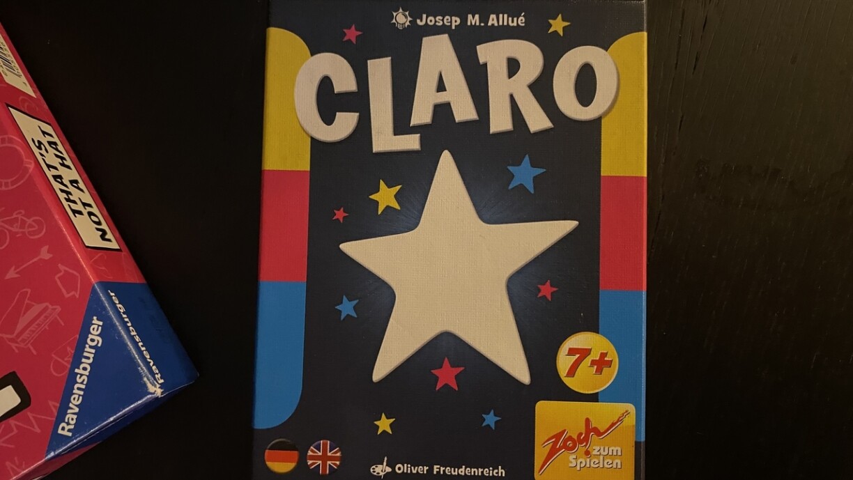 Op der 2. Plaz kënnt “Claro”, e Kaartespill bei deem et drëms geet, sou laang wéi méiglech Kaarten ausspillen ze kënnen an sou senge Matspiller iwwerleeën ass. E wéineg Taktik a Gléck sinn hei gefrot, fir zum Schluss also Gewënner ervirzegoen.