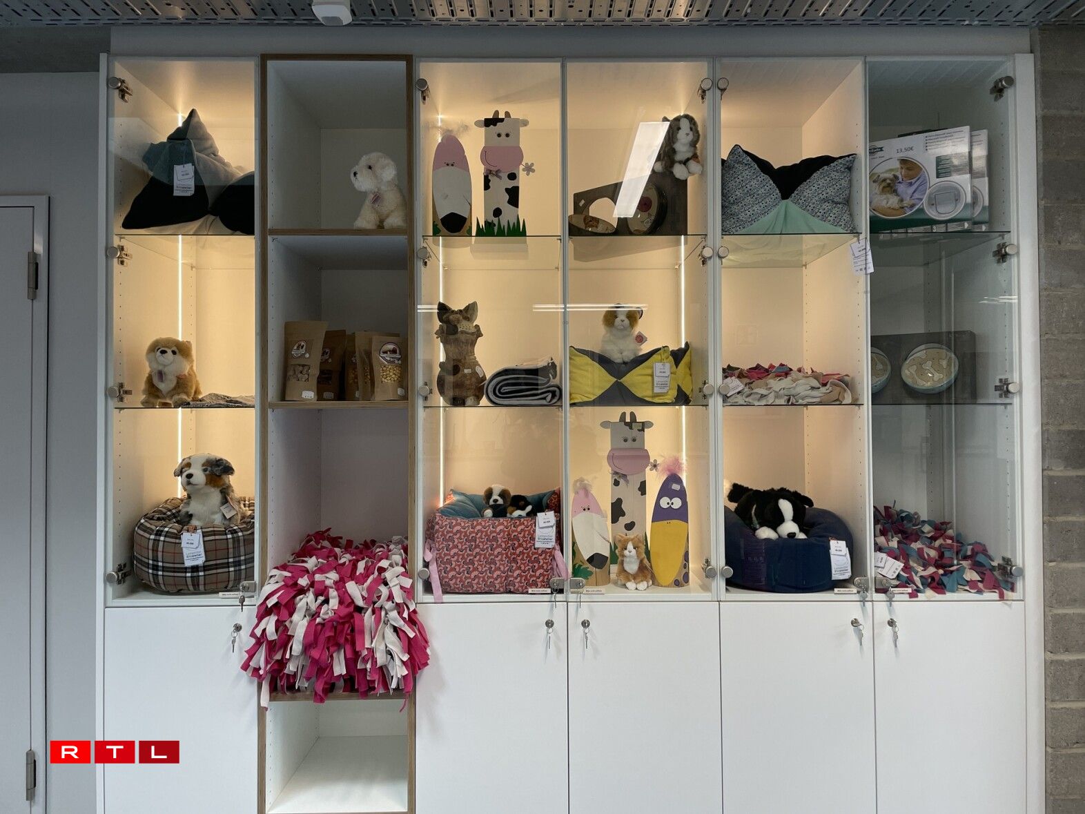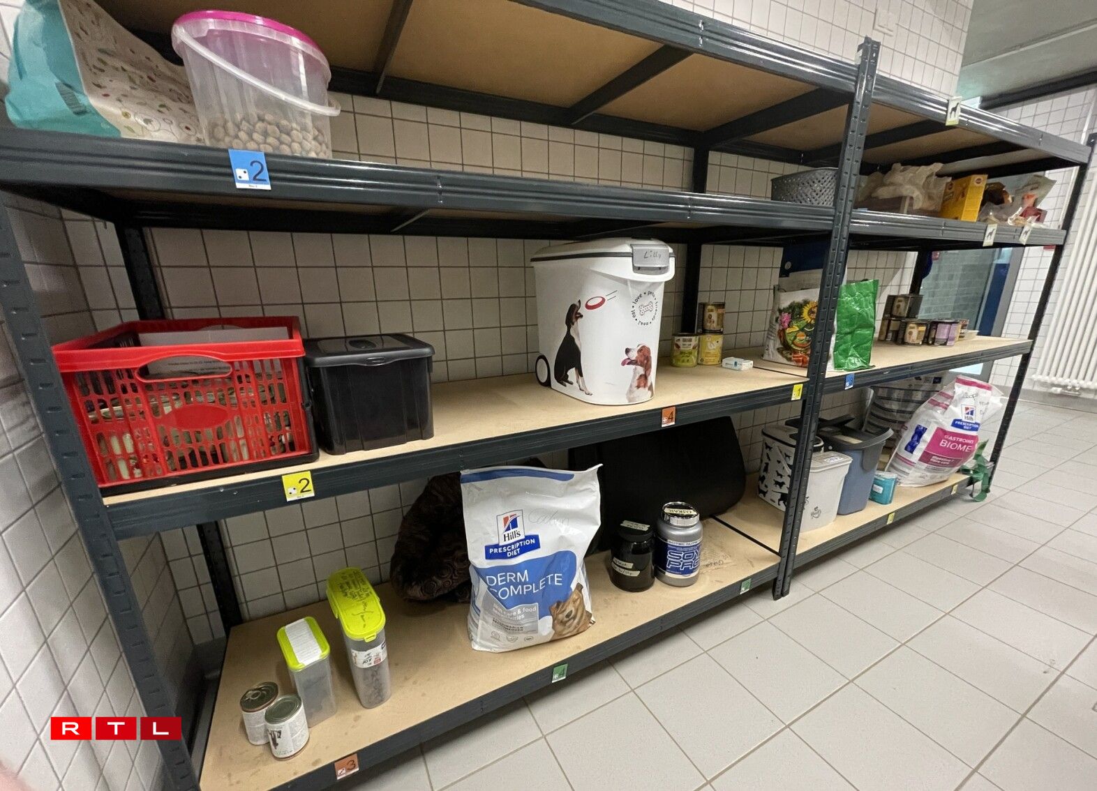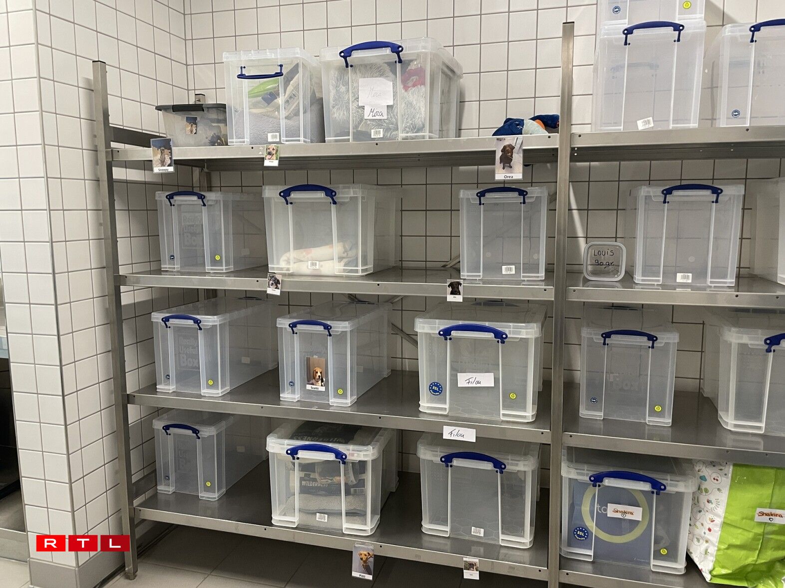 Hondsbesëtzer dierfen hiren Déiere Fudder, Spillsaachen oder Schlofdecke matginn. Och hei sinn d’Boxen an d’Fudder mat Piktogrammer gekennzeechent, fir datt dat richtegt Fudder och beim richtege Mupp ukënnt. Well d’Muppen, déi an d’Crèche ginn, méi dacks de Raum wiesselen, gëtt bei hinne mat Fotoe geschafft.