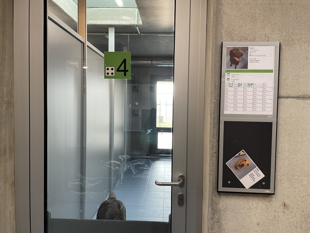 Bei den Hënn sinn d’Ofleef net grad esou gereegelt, wéi de Kazen, dofir stinn hei op de Lëschten nach zousätzlech Informatiounen drop. D’Julie erkläert, datt verschidde Muppen zum Beispill nëmmen ee Mol den Dag gefiddert ginn, anerer 2-3 Mol. Och wéi dacks en Hond spadséiere geet, variéiert vun Déier zu Déier. Alles dat muss festgehale ginn, fir datt jidderee weess, wat ze maachen ass. Beim Spadséieren oder op d’Wiss loossen, sinn et meeschtens zwee Muppe beieneen. Dofir gëtt an enger Ugangsphas getest, ob d’Hënn och matenee kënnen. Dofir ginn zwee Mataarbechter zesumme mat engem Betreier mat zwou Léngten an enger duebeler Sécherung spadséieren. Lëschtenhënn kënne leider net spadséiere goen, well dofir eng speziell Autorisatioun gefuerdert ass. Fir d’Gesondheet an d’Wuel vun den Déieren z’iwwerwaachen, ginn d’Déieren och reegelméisseg gewien. Déi éischt Kéier, war se bruecht ginn a spéitstens eng zweet Kéier, wa se rëm ofgeholl ginn. Hënn, déi iwwer e méi laangen Zäitraum an der HoKa bleiwen, gi reegelméisseg Méindes an Donneschdeg gewien. Ma do ass et awer net ëmmer ganz evident, datt de Mupp och wierklech stall hält. Qualifizéiert Déierefleeger wéi de Raf kenne sech awer aus an hunn hir Tricken, fir datt den Hond follegt.
