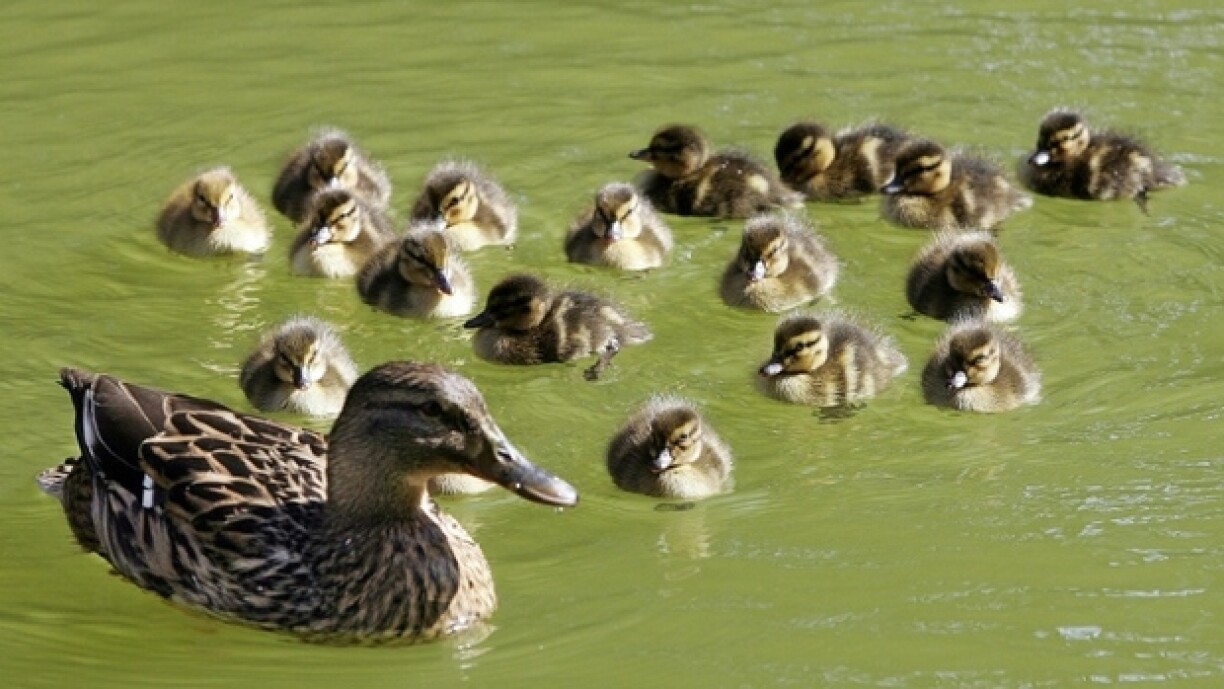 Zënter en Dënschdeg hat sech eng Intemamm mat hire 6 Kléngen do gemittlech gemaach. Ma d’Jippelcher koumen awer net méi aus eegener Kraaft aus dem Waasser, esou d’Police, déi den Déieren dobäi missten hëllefen. “Ob d’Rettung am Schwammen oder duerch ulackele mat Fudder ofgelaf ass, gouf net iwwerliwwert”, esou heescht et am Policebulletin.