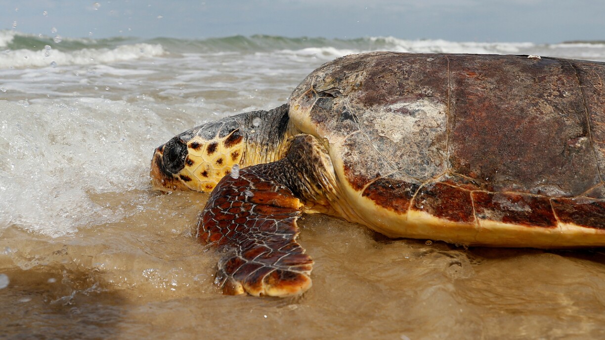 Déi bis zu 50 doudeg oder liewensgeféierlech verwonnte Gréng Mieresschildkröten hate sëllege Stéchwonnen, wéi se op der Plage op der Insel Kumejima fonnt goufen. Et wier eng “äusserst grausam Zeen” gewiescht, sou de Yoshimitsu Tsukakoshi vun der lokaler Schutzorganisatioun.
