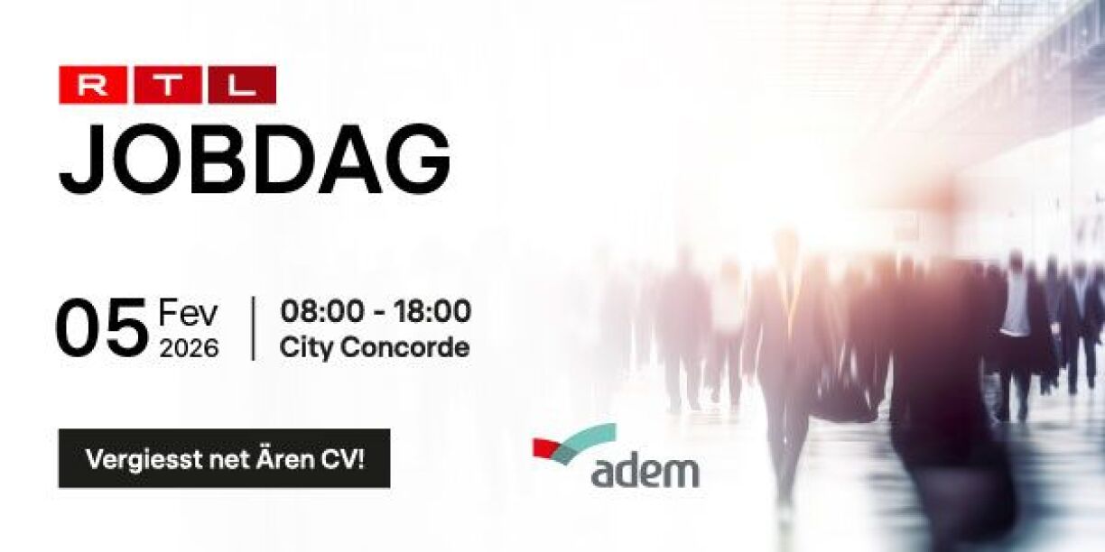 Am Ganze fannt Dir 6 Audio-CVe vu Leit, déi op der Sich sinn no enger Aarbecht op jobdag.lu. Op der selwechter Säit kënnt Dir och déi 100 Betriber gesinn, déi en Donneschdeg an der City Concorde present sinn, an et gëtt e Plang, wéi d’Stänn de Beräicher no opgebaut sinn.