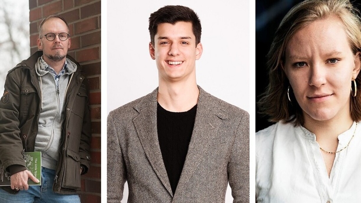 Link op d’Websäit vum LiteraTour 2022 Mit Dietmar Dath (Foto links), Maxime Allard und Raphaela Edelbauer (per Visio beigeschaltet)