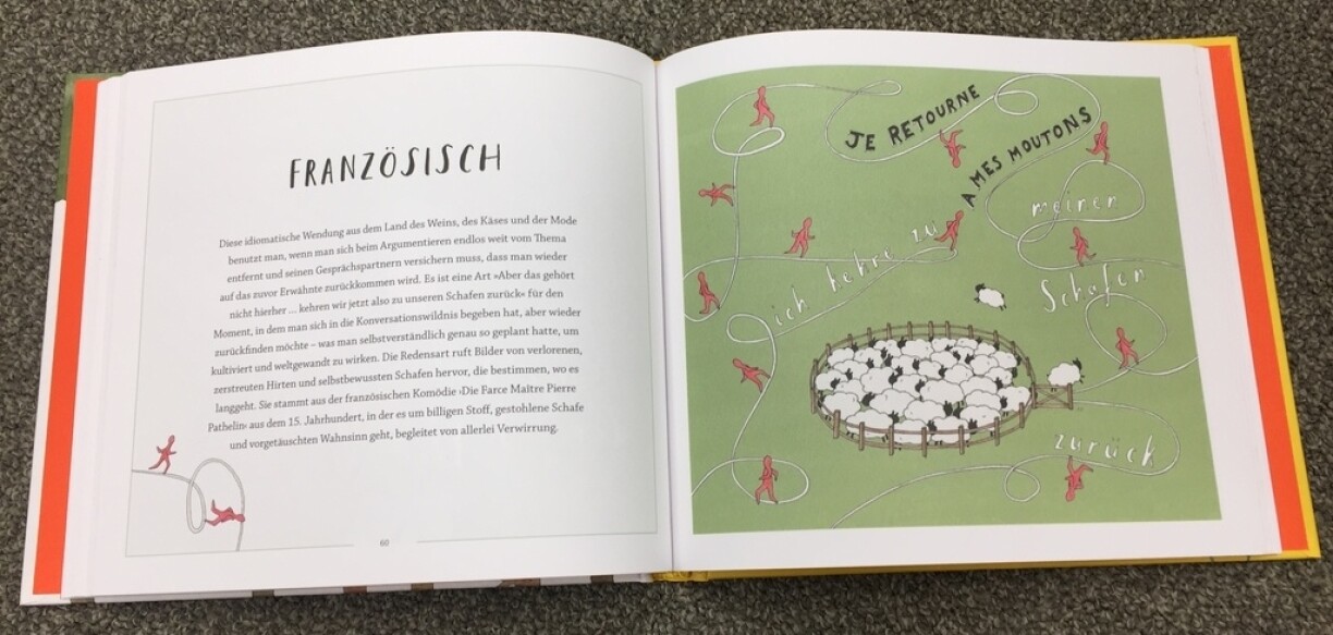 D’Ella Frances Sanders aus Groussbritannien huet elo nogeluecht. Nom Bestseller “Lost in Translation”, an deem eng 50 “oniwwersetzbar Wierder” kuerz a knackeg virgestallt an illustréiert goufen (d’Buch gouf paradoxerweis an e sëlleche Sproochen iwwersat), geet si elo op keck Spréchwierder aus der ganzer Welt an: “Auch Affen fallen mal von Bäumen” ass den Titel vum neie Buch - et ass, wann een esou wëll, eng logesch Suite.