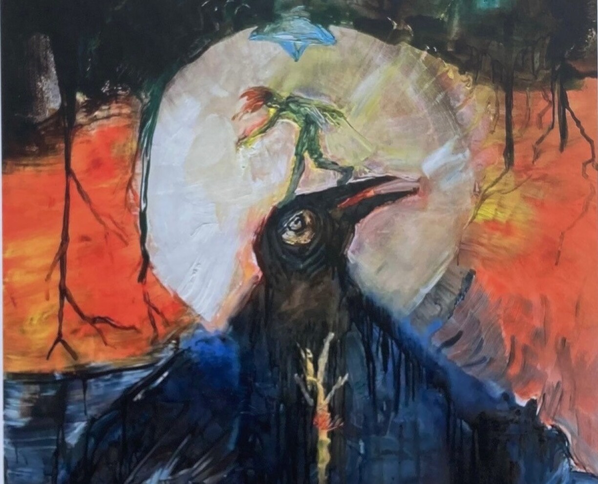 Eines Tages erblickt er auf der Wiese einen großen, schwarzen Vogel, der sogar sprechen kann. Er bittet Wurzel, ihm beim Aufsteigen zu helfen, weil es er selbst nicht mehr kann, und Wurzel tut es. Gleichzeitig krallt er sich mit einer Hand in den Federn des Vogels fest, fliegt mit ihm der Sonne entgegen, in deren Nähe es ihm bald zu heiß wird, doch der Vogel steigt weiter empor.