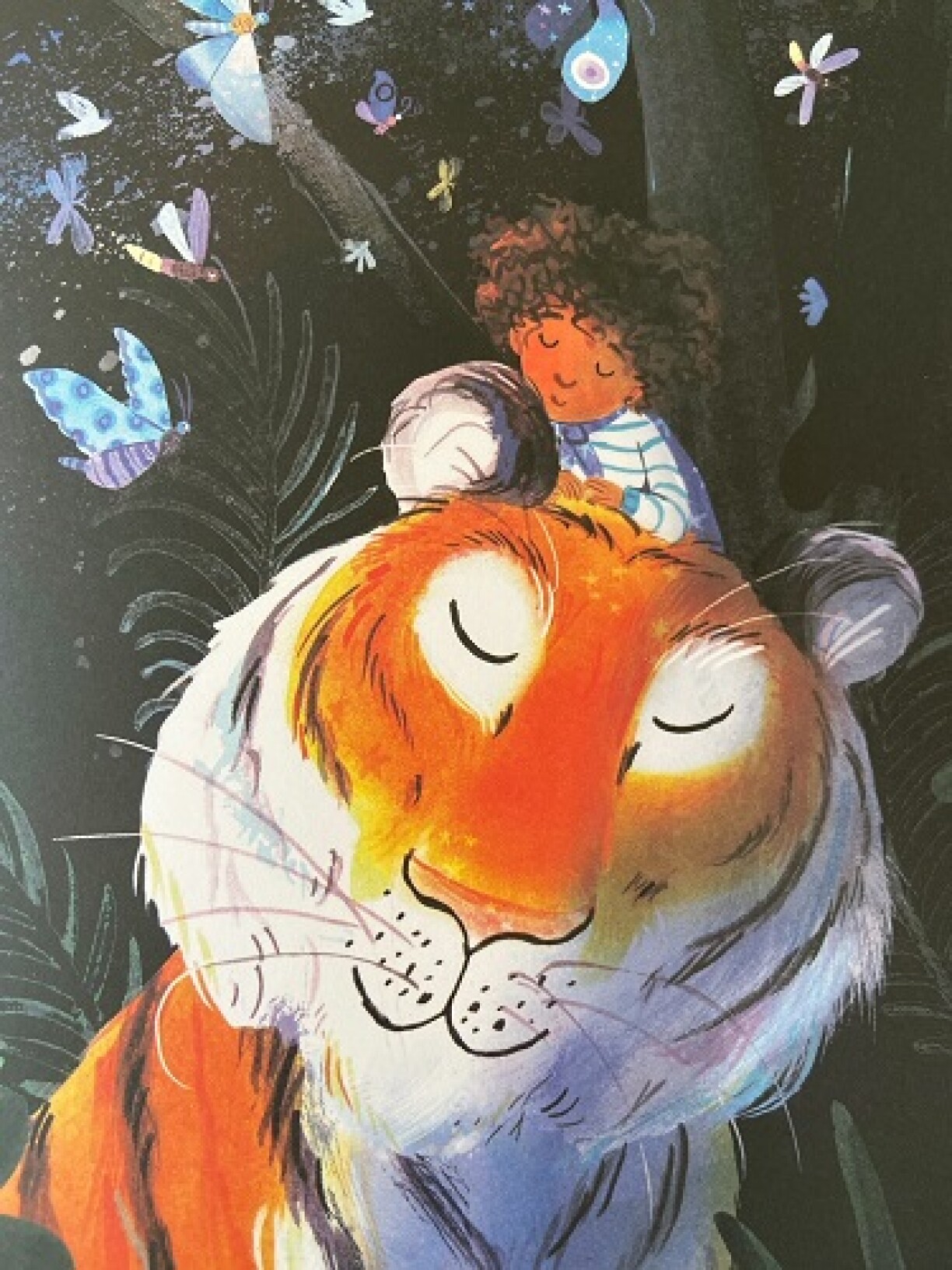 A sengem Zelt begéint en engem gemittlechen a frëndlechen Tiger.