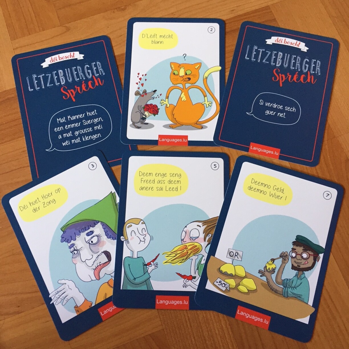 D’Sammlung vu Kaarte mat Lëtzebuerger Spréch drop soll Loscht op eis Sprooch maachen an hëllefen, déi eenzel Ausdréck och richteg ze gebrauchen.