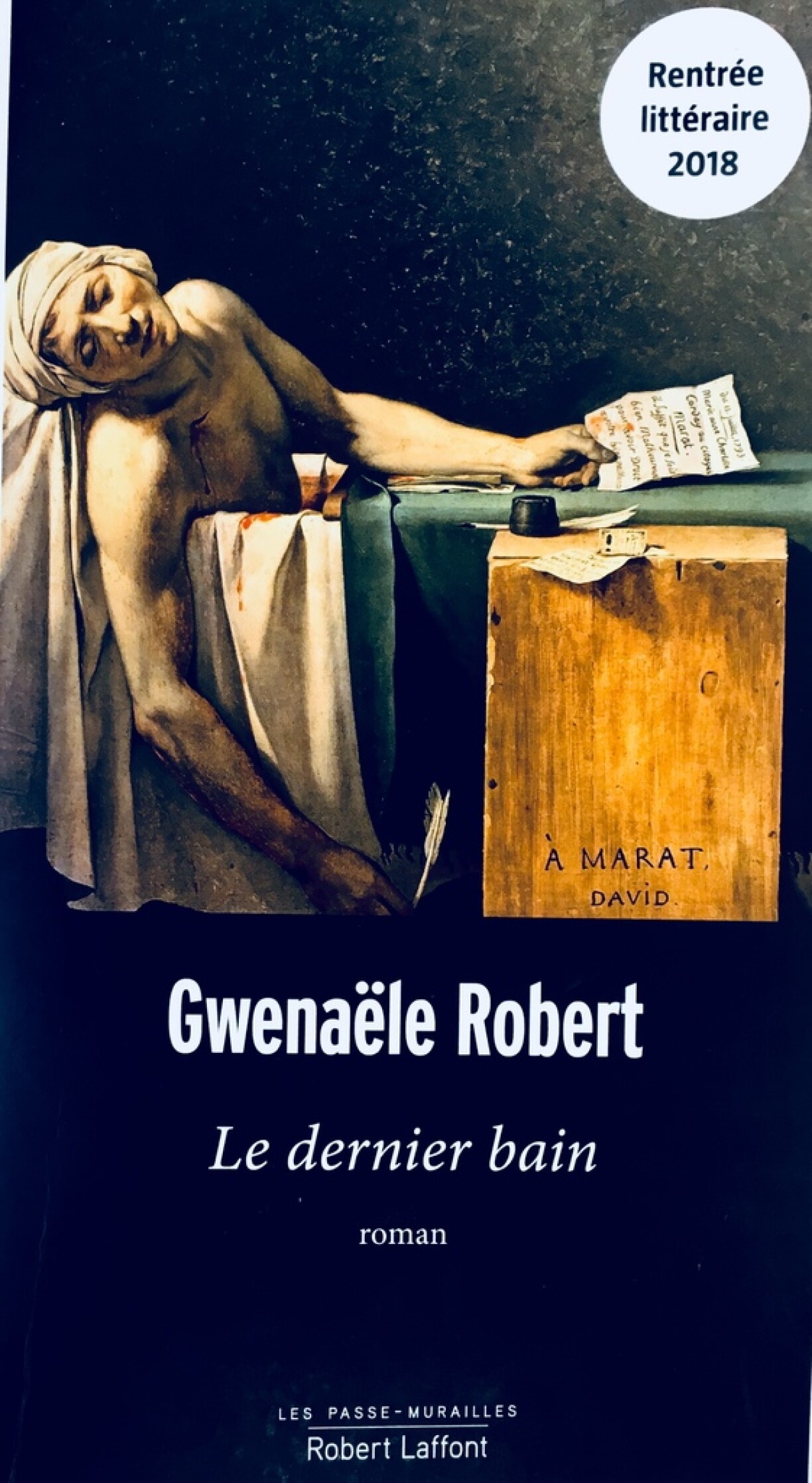 De Buch-Cover war et, dee mer Loscht ginn huet “Le dernier bain” vum Gwenaële Robert ze liesen. Dem David säin emblematescht Bild “La mort de Marat” gouf am Juli 1793 an Optrag ginn. Et weist de Konventionalist e puer Minutten no sengem Doud an der Bidden. A där enger Hand e Bréif vum Charlotte Corday, an där aner Hand, eng Lëscht mat Käpp, déi nach sollte rullen.