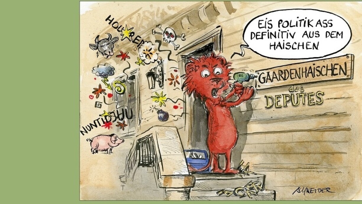 Zum Ënn des Joers blécken d’ “éditions revue” a den Carlo Schneider nach e Mol op déi wichtegst Momenter vun den leschten zwielef Méint zréck. Op eng gewinnt humorvoll, kritesch Manéier a mat Bëss. D’ Karikatur-Sammlung “Karikatour 2019“. D’ Joer an der Pressezeechnung” wéist op 66 faarweg illustréierten Säiten, wat d’ Press dëst Joer beschäftegt huet a hëlt sech dobäi selwer net ze eescht.