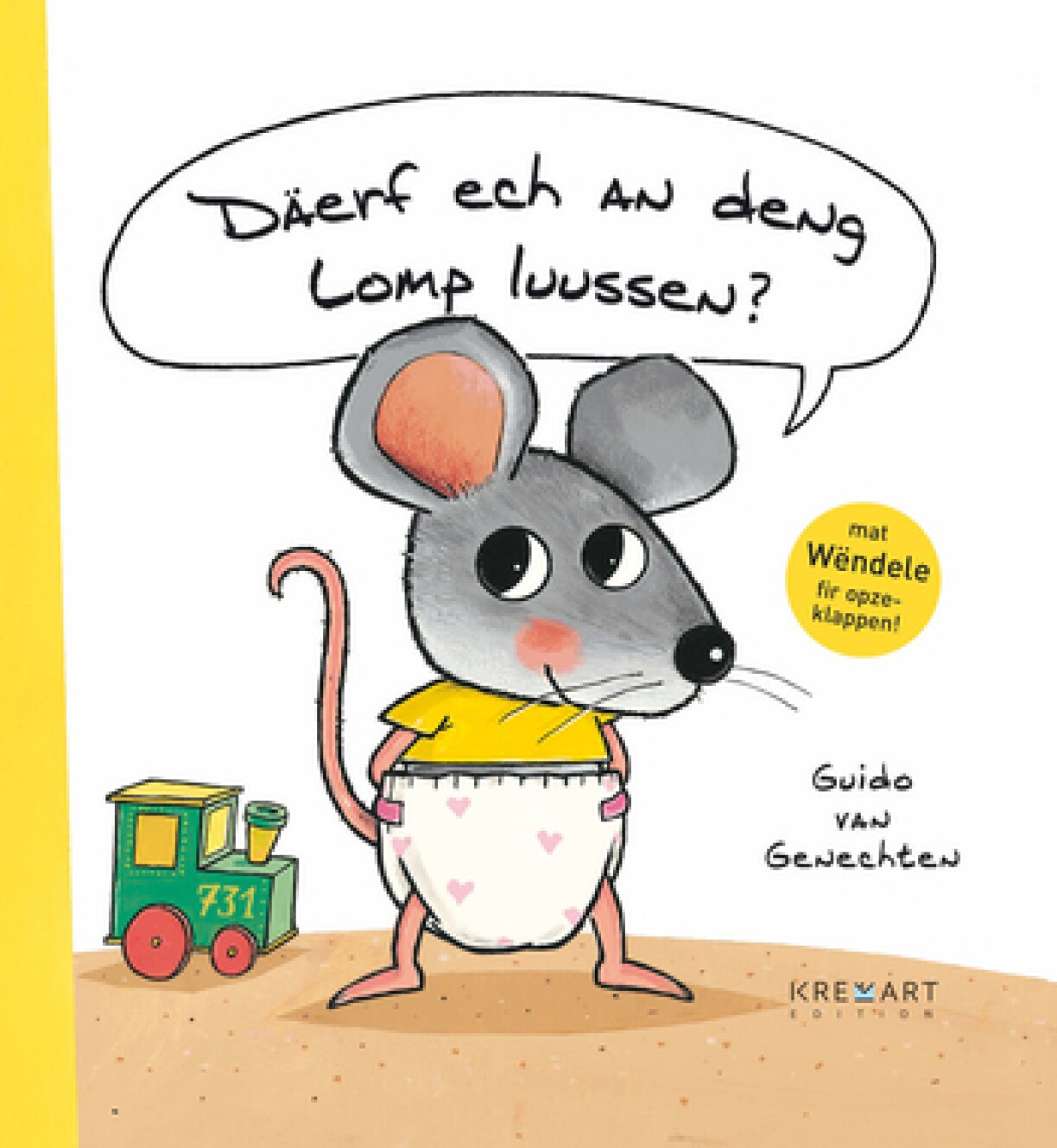 En häerzegt Billerbuch mat witzegen Opklapp-Wëndelen iwwer de Virwëtz vun enger klenger Maus ... an eng flott Hëllef beim Potti-Training! D’Buch vum Guido van Genechten ass am Original beim belsche Verlag Clavis erauskomm a gouf antëscht an e sëlleche Sproochen uechter d’Welt iwwersat. Déi lëtzebuergesch Versioun ass vum Luc Marteling. En Heedespaass fir Kanner vun ongeféier zwee Joer un.