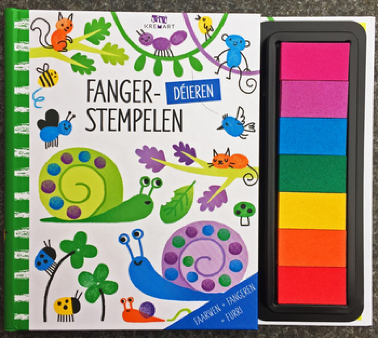 Faarwen + Fangeren = Furri a Fantasie!Dëst Buch stécht voller Iddie fir Fangerofdréck an et ass genuch Plaz do, fir der Fantasie fräie Laf ze loossen. Esou geet et: Huelt den Deckel vun de Kësse mat der Tënt erof, tuppt d’Spëtzt vun engem Fanger an eng Faarf, sicht eng flott Virlag eraus a komplettéiert a verschéinert se!