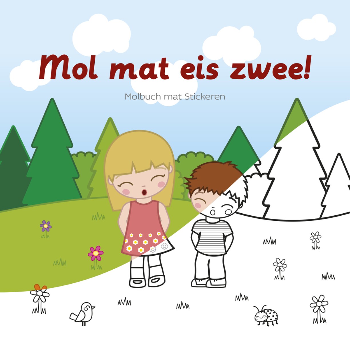 “Mol mat eis zwee! - Molbuch mat Stickeren” ass e flott Molbuch fir déi Kleng aus dem Precoce an aus der Spillschoul, mat all de Biller aus dem Kannerlidderbuch “Sang mat eis zwee!”, dat virun 2 Joer erauskomm ass an säitdeem grousse Succès huet.