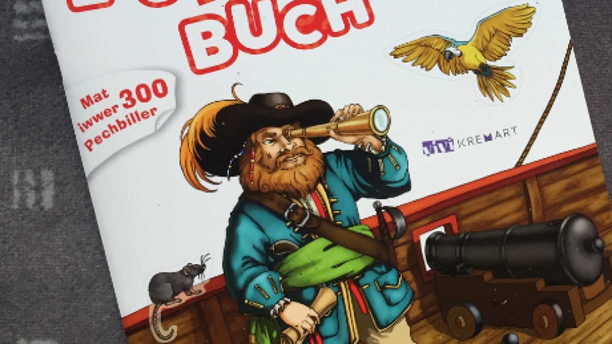 D’Heft an engem grousse Format gehéiert zu der neier Kremart-Serie “Wat? Wéi? Wou?”, an där dat immens erfollegräicht Buch “Mäi Biller-Lexikon: Meng Welt” den Optakt gemaach huet. Hei, wat alles am Pirate-Stickerbuch dran ass: