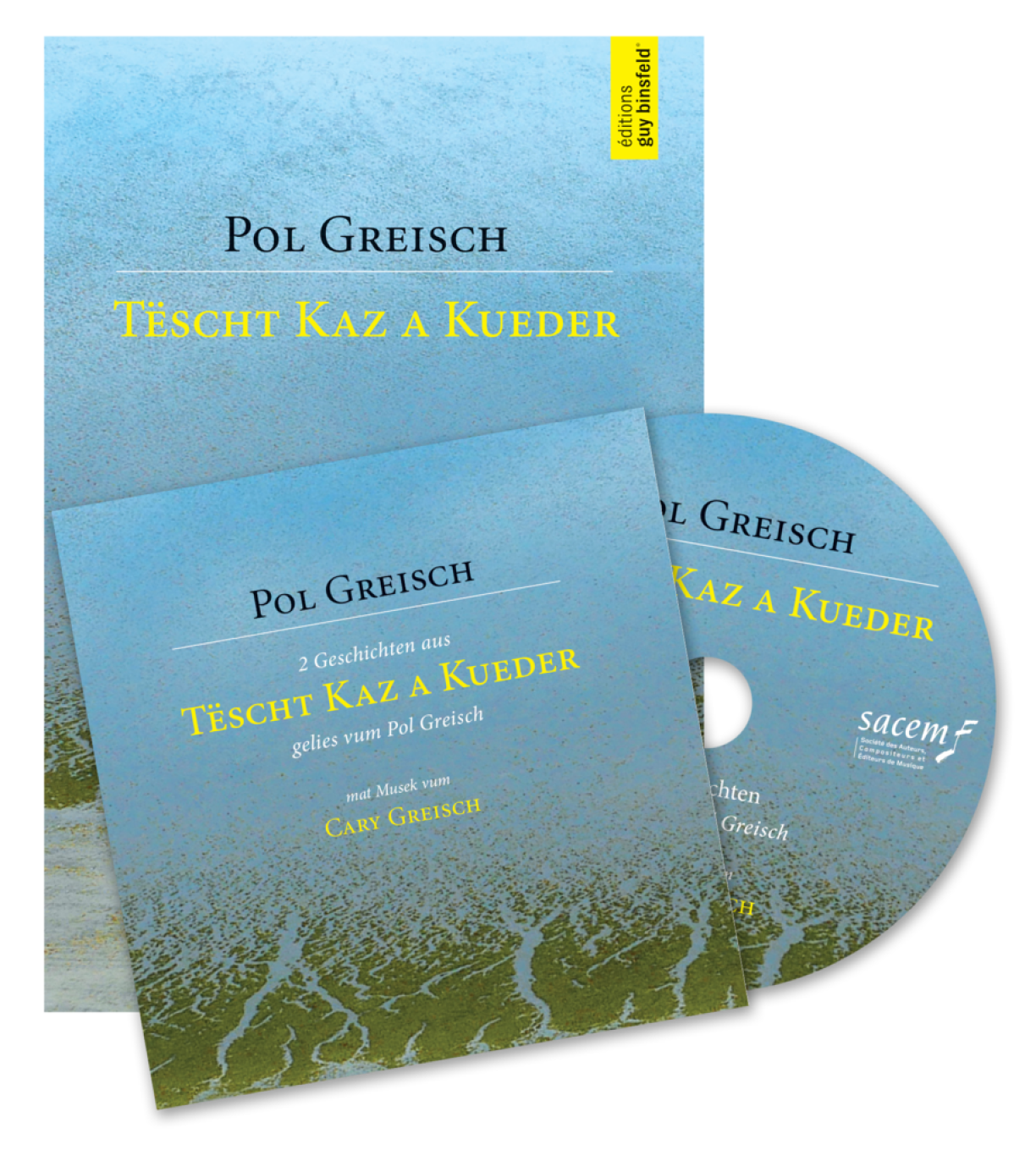 Inkl. Bonus-CD mat Geschichte gelies vum Auteur a musikalesch ënnermoolt vum Cary Greisch Tëscht Kaz a Kueder – Geschichten ass eng ganz besonnesch Zesummenaarbecht vun der Famill Greisch. De Pol Greisch huet dës Geschichte geschriwwen a säi Bouf de Cary Greisch huet sech dovunner inspiréiere gelooss an zur Titelgeschicht Tëscht Kaz a Kueder an der Suite Museksstécker komponéiert.