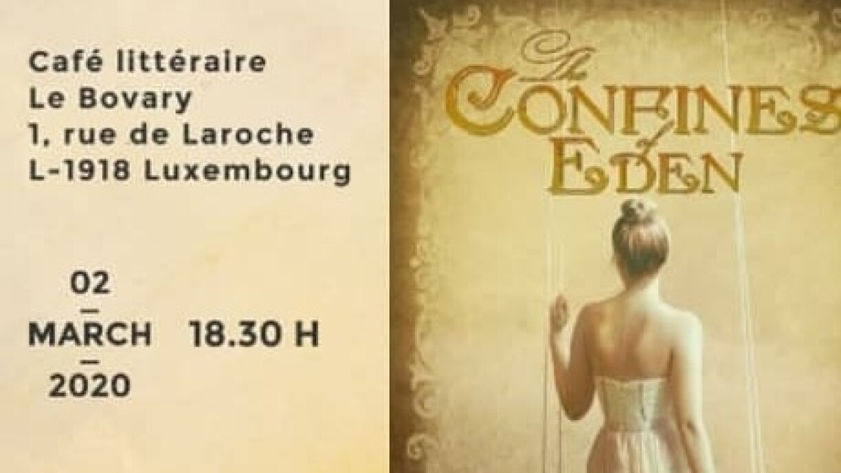 D’Liesung aus “The confines of Eden” ass e Méindeg den 2te Mäerz um 18h30 am café littéraire Le Bovary (1, Rue de Laroche L-1918 Lëtzebuerg). Fir sécher ze sinn, dass een eng Plaz kritt, kann een um Telefon 27 29 50 15 reservéieren.