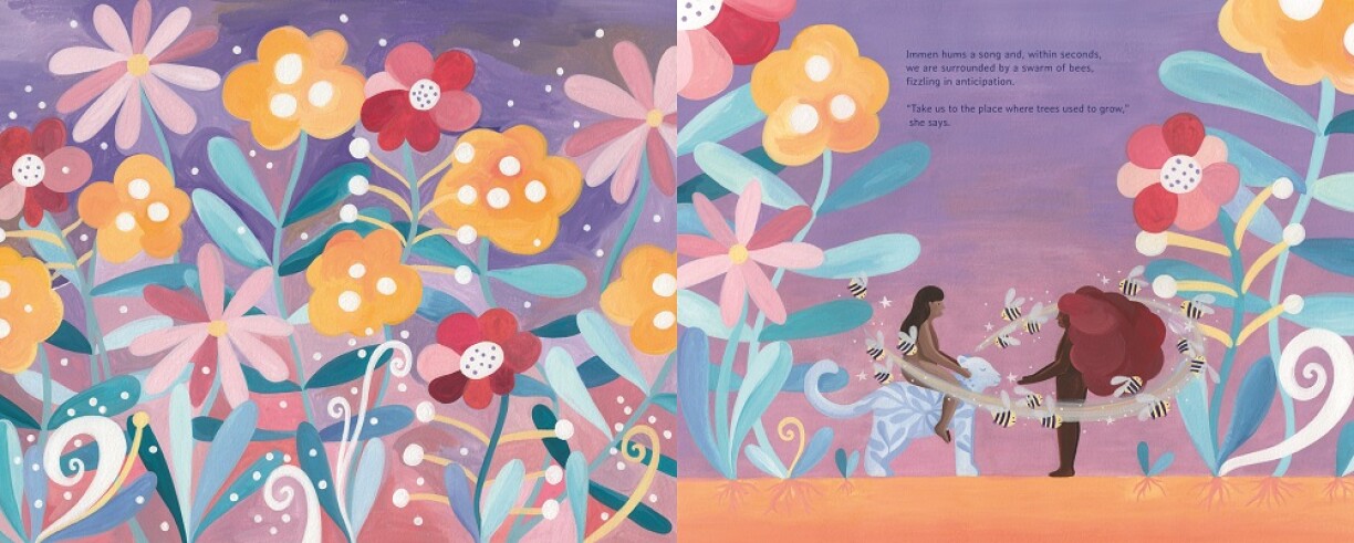Waking the Mountain is a relevant and hopeful story about friendship and working together towards a better future and a healthier planet. Lisa Junius’s soft and colored illustrations lead the reader trhough this wondrous world and make the text, written by Marina Fonseca, come to life.