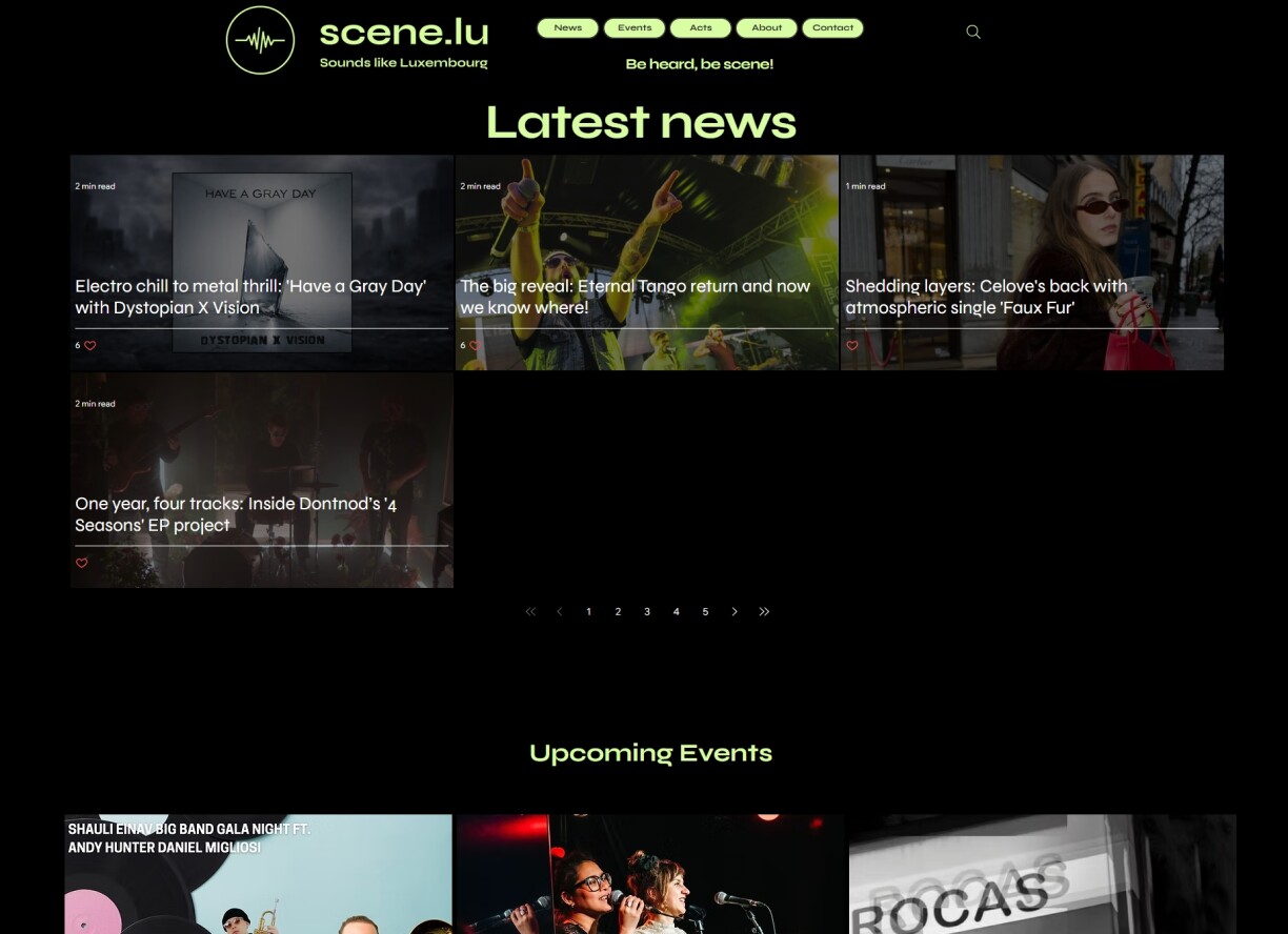 E Site op dem Kënschtler sech kënnen umellen a kënnen sech sou an der Musekswelt vernetzen. Och eng ganz Partie Evenementer ginn um Site opgelëscht an et weess een ëmmer wat a punkto Concerte lass ass.