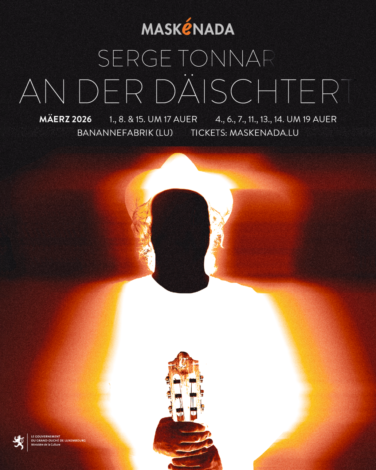 De Serge Tonnar ass invitéiert op eng Partie Concerten “an der Däischtert” an der Banannefabrik an der Stad. Den 1. Mäerz ass den éischten Optrëtt. De Concert ass ganz ouni technesch Mëttelen, keng Luuchten a keng Anlag, ganz am Däischteren.