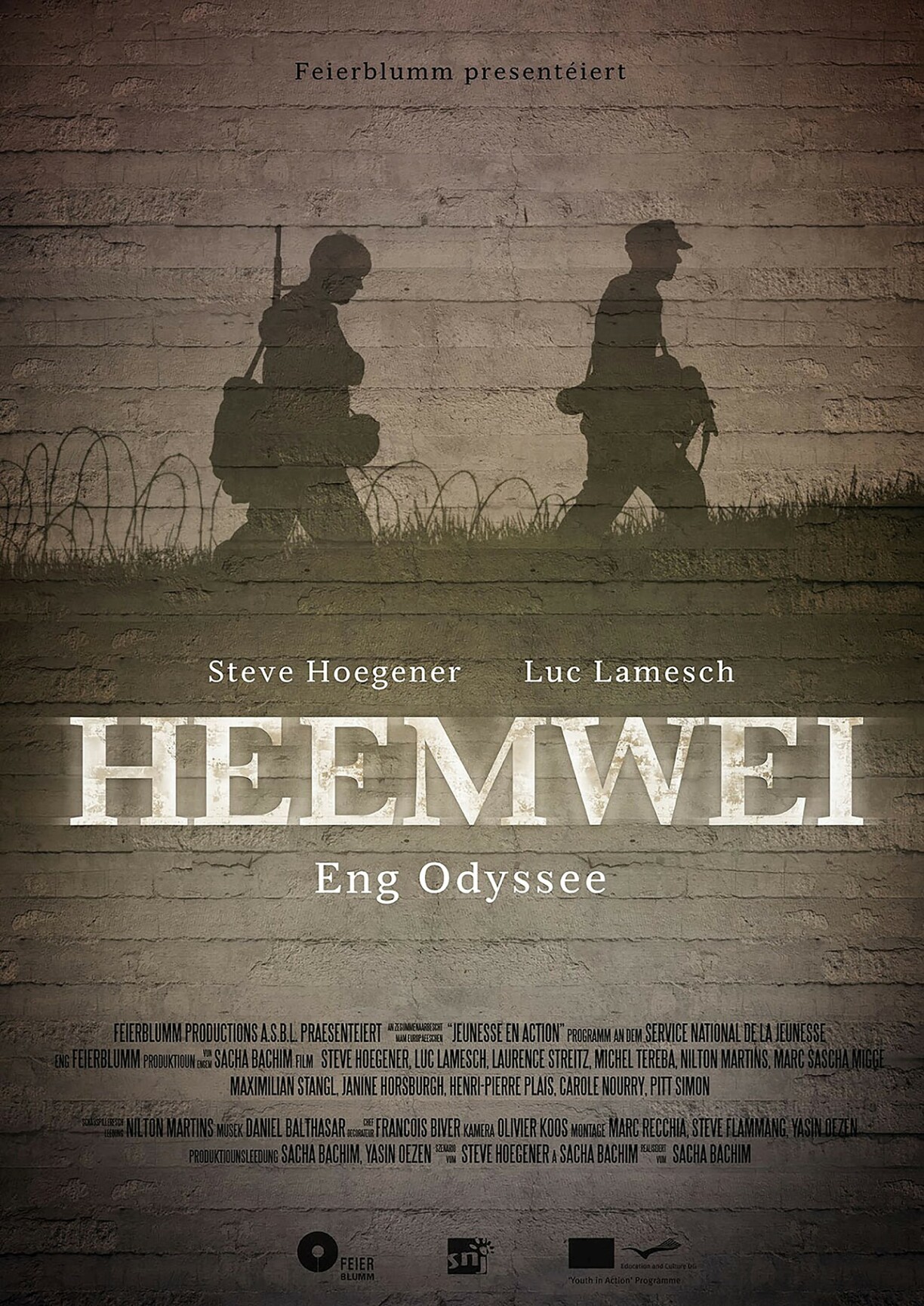 De Film Heemwéi erzielt d’Geschicht vun zwee jonken zwangsrekrutéierte Lëtzebuergeschen Zaldoten, déi sech entscheeden ze desertéieren, fir zeréck an d’Heemescht ze goen. Eng Rees, am Laf vun där de Spectateur net nëmme mat den offensichtleche Konsequenze vum Krich konfrontéiert gëtt, ma och mat deenen ënnerschwellege Säite vun arméierte Konflikter. “Et geet vill ëm Identitéit”, fiert de Sacha Bachim duer, “wie sinn ech, wann ech als Lëtzebuerger eng däitsch Uniform droen? Wou gehéieren ech dann hin, wann ech nees zeréck Heem wëll?”