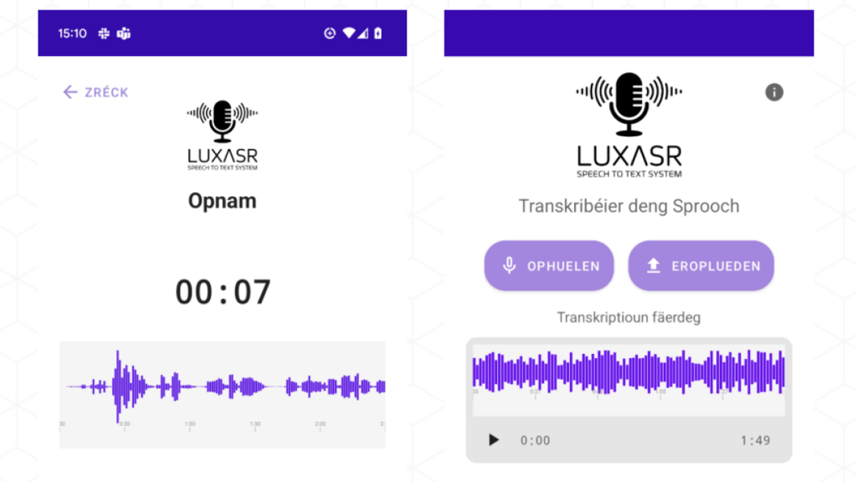 D’App LuxASR vum Prof. Dr. Peter Gilles vun der Uni.lu ka gratis am App Store oder op Google Play erofgeluede ginn.