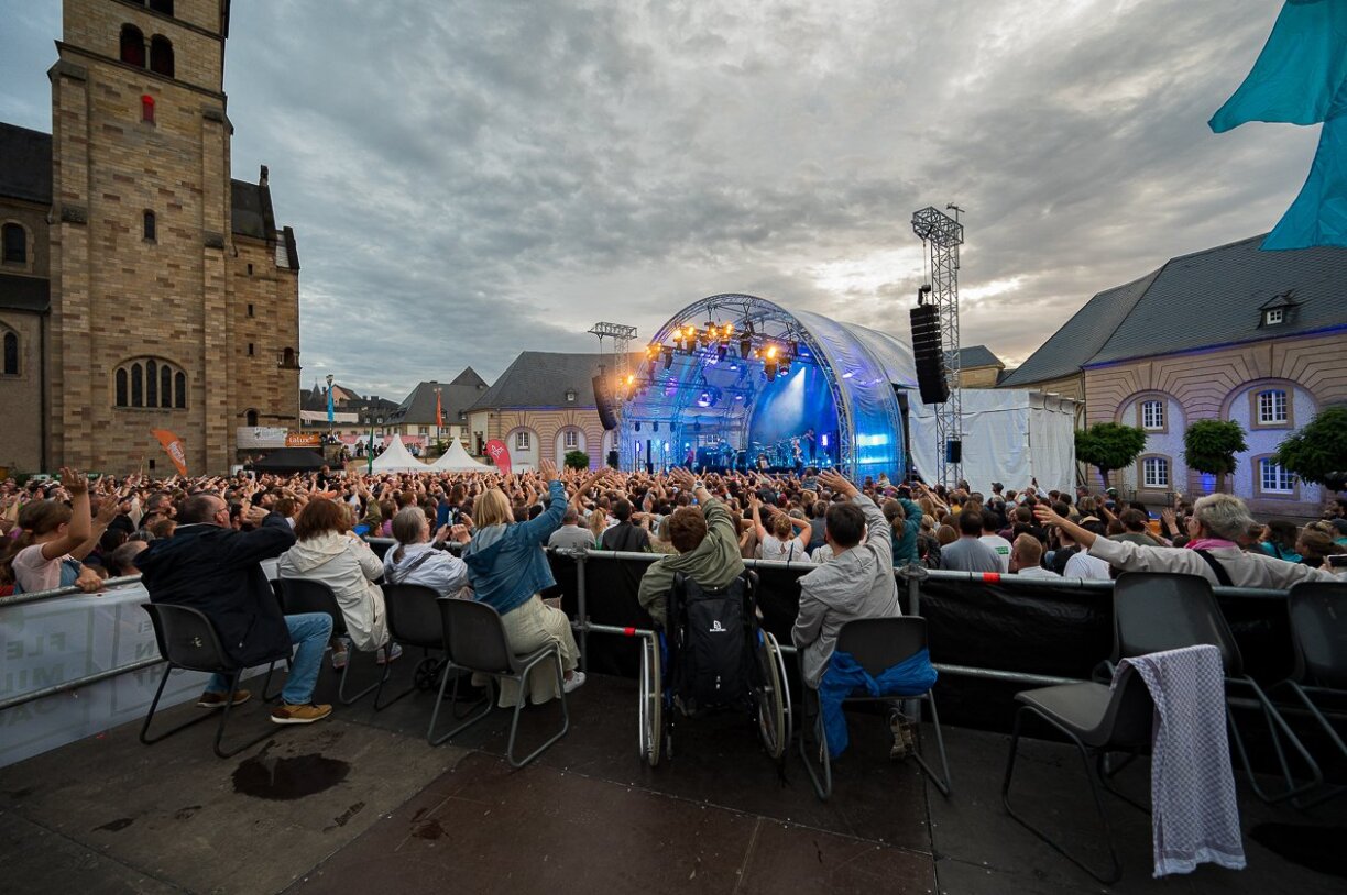 Déi meescht Fans ginn op e Concert fir gutt Musek ze lauschteren, zu Iechternach huet och de Kader de Concert zu eppes Besonneschem gemaach. An de Clueso wousst mat senger Band dës Kuliss ze notzen an de Public zwou Stonne laang ze begeeschteren an d’Stëmmung héich ze halen.